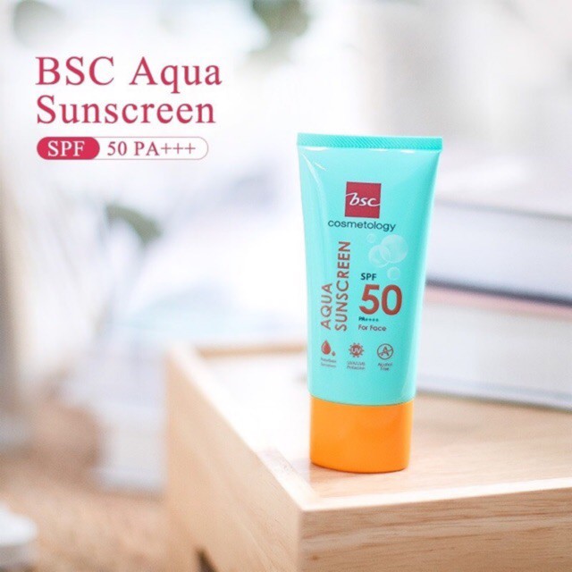 BSC AQUA SUNSCREEN SPF 50 PA++++ ช่วยป้องกันแสงแดด SPF 50 PA++++ กันแดดสูตรน้ำ ซึมซาบเร็ว ไม่เหนี่ยวเหนอะหนะ