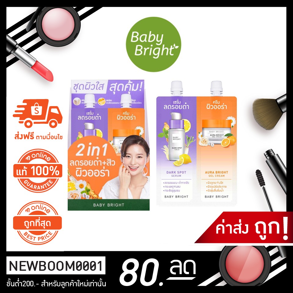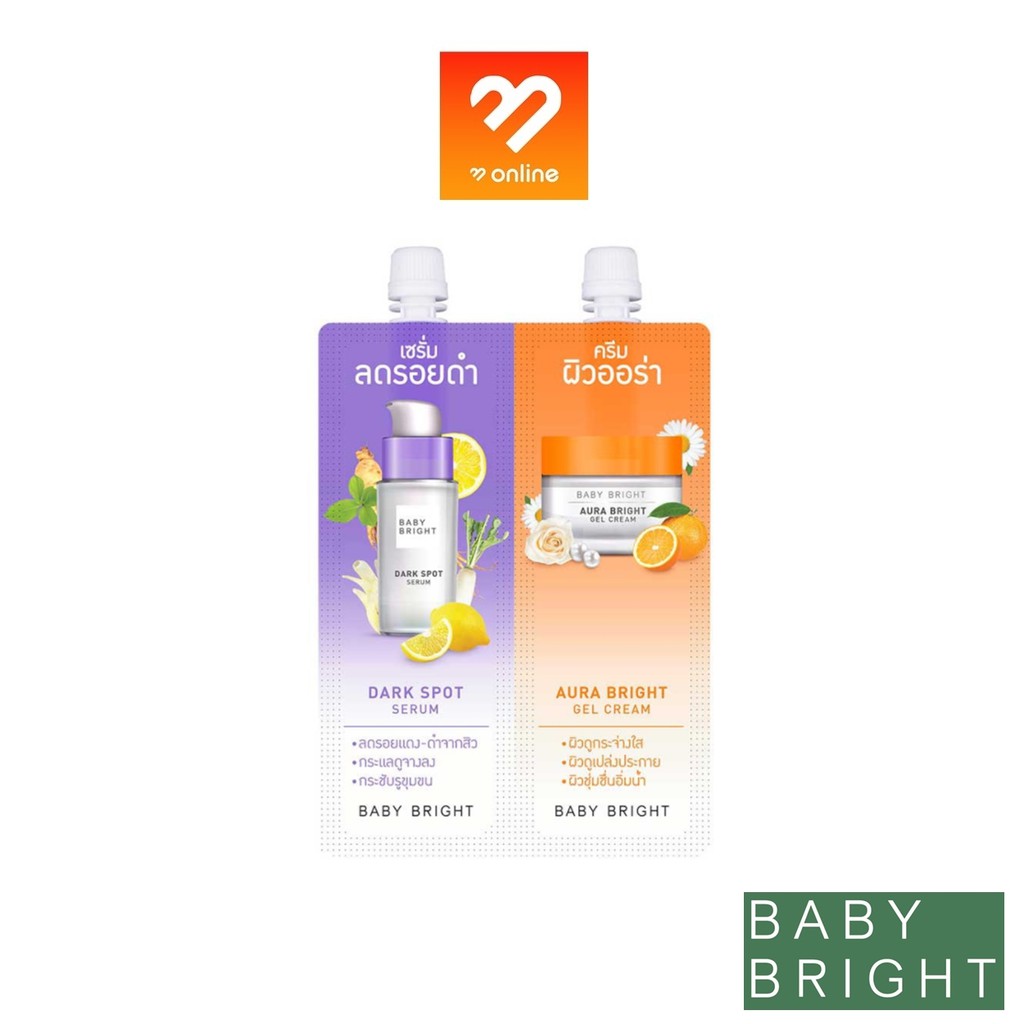 BABY BRIGHT DUO BOOSTER DARK SPOT SERUM & AURA BRIGHT GEL CREAM 2 IN 1 เซรั่ม/ครีมในซองเดียว