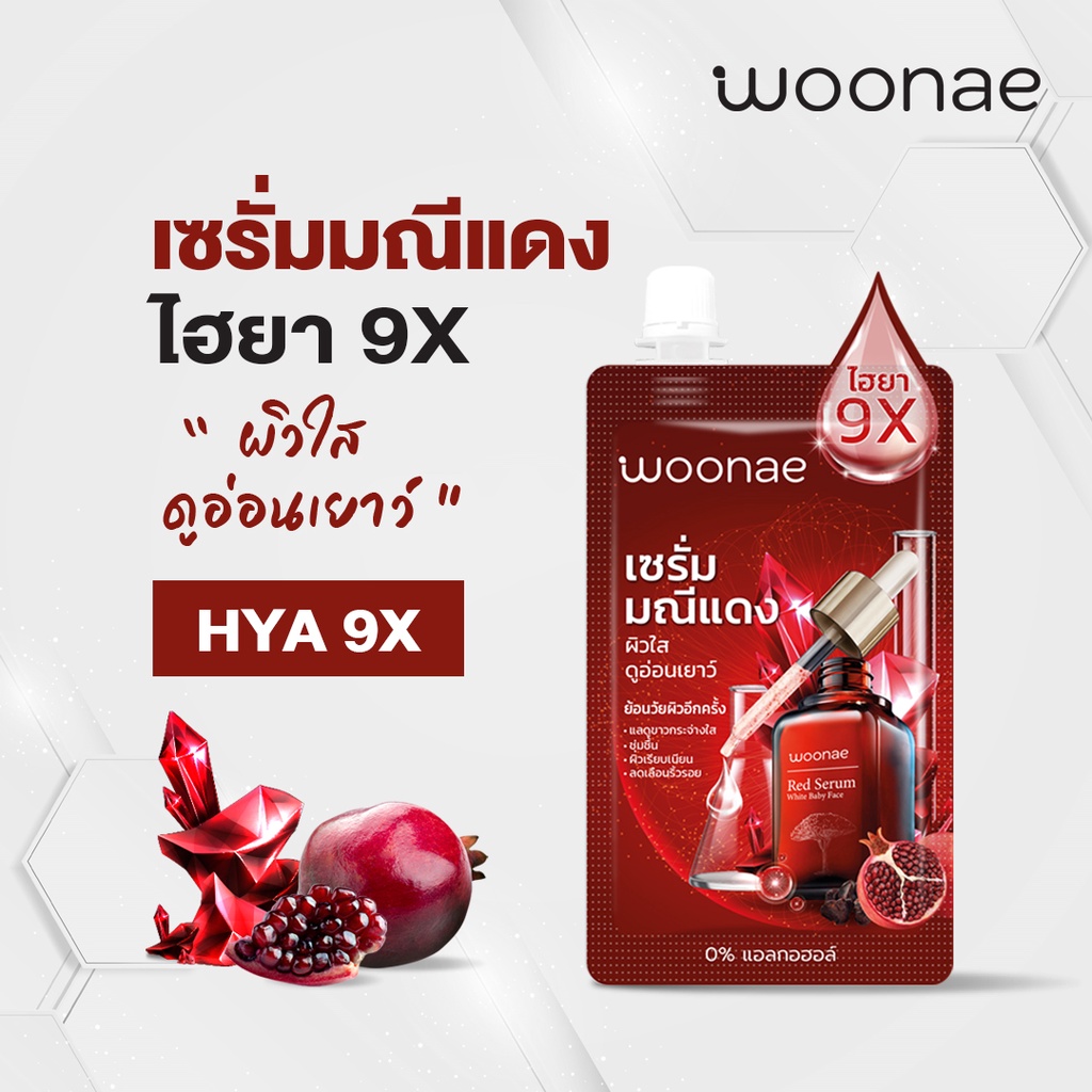 (กล่องX6ซอง) Woonae วูเน่ มณีแดง ไวท์&เบบี้ เฟส เซรั่ม 50กรัม #เซรั่มมณีแดง
