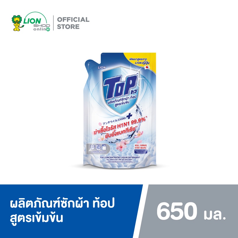 TOP ผลิตภัณฑ์ซักผ้า ท้อป สูตรเข้มข้น ถุงเติม Refill 650 มล.