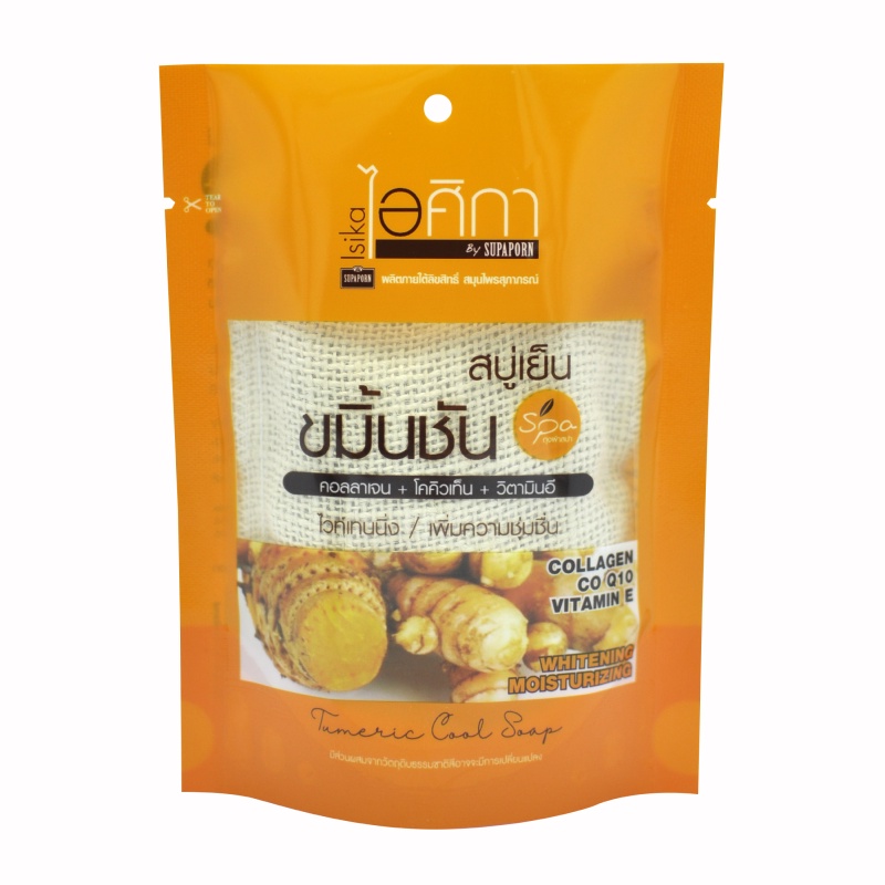 🌟 สบู่เย็น สมุนไพร ขมิ้นชัน ไอศิกา คอลลาเจน+โคคิวเท็น+วิตามินอี ISIKA TURMERIC COOL HERBEL SOAP 70กรัม