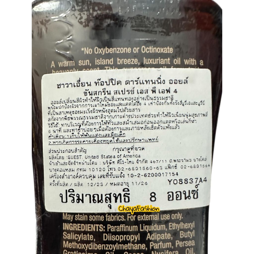*SALE* Hawaiian ฮาวาเอี่ยน ท็อปปิค ตาร์แทนนิ่ง ออยล์ ซันสกรีน สเปรย์ เอสพีเอฟ4 240มล. *เลือกด้านใน*