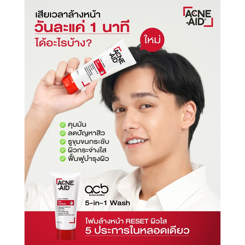 Acne Aid 5in1 Wash Oil Control แอคเน่ เอด 5อิน1 วอช ออยล์ คอลโทรล [100 ml.] เนื้อครีม ล้างหน้า หน้ามัน เป็นสิวง่าย