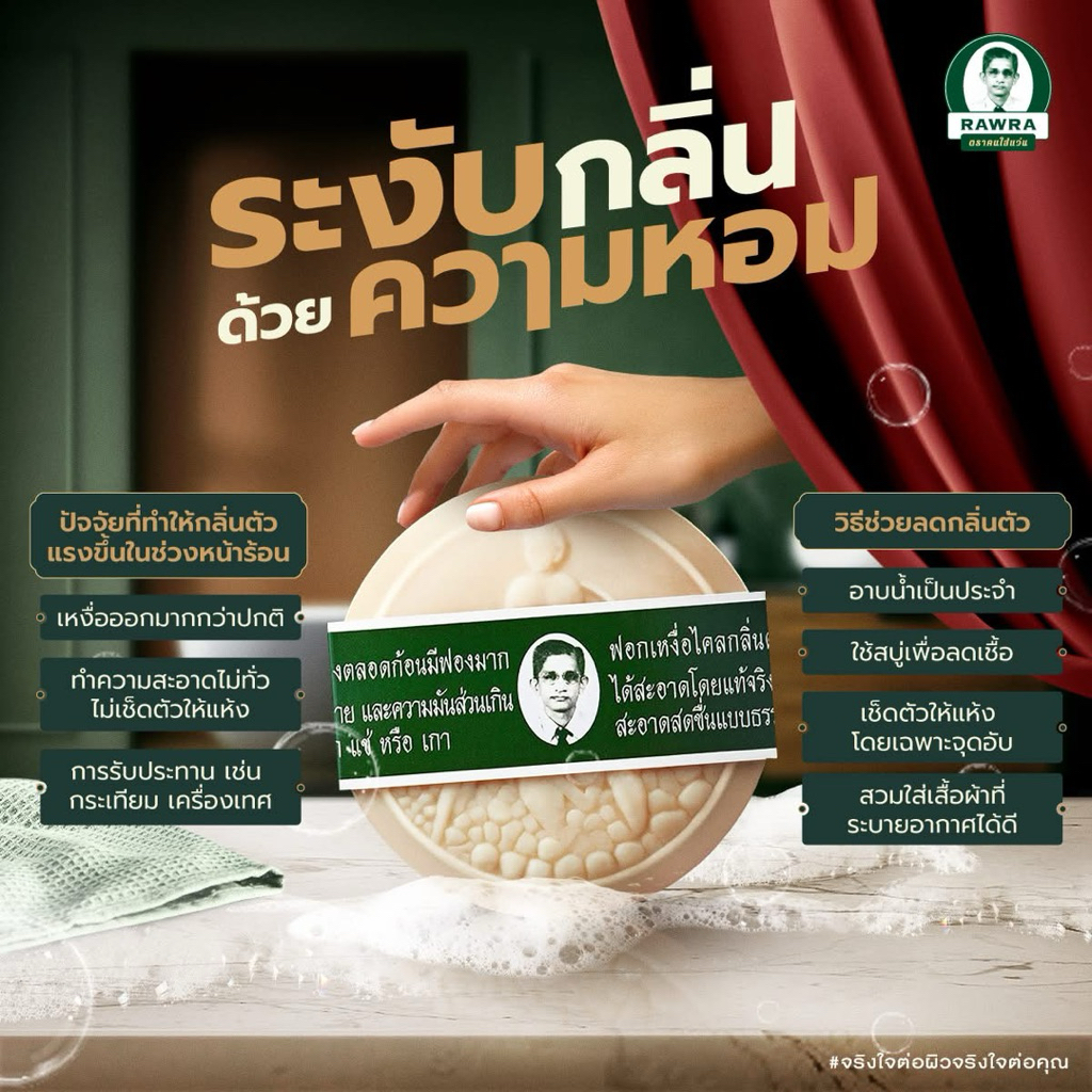 Rawra รอว์ร่า สบู่สมุนไพรกลั่น ตราคนใส่แว่น 2สูตร 170g