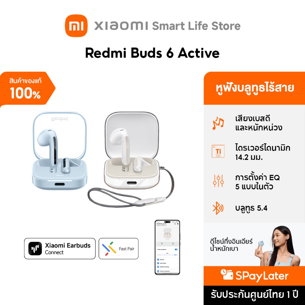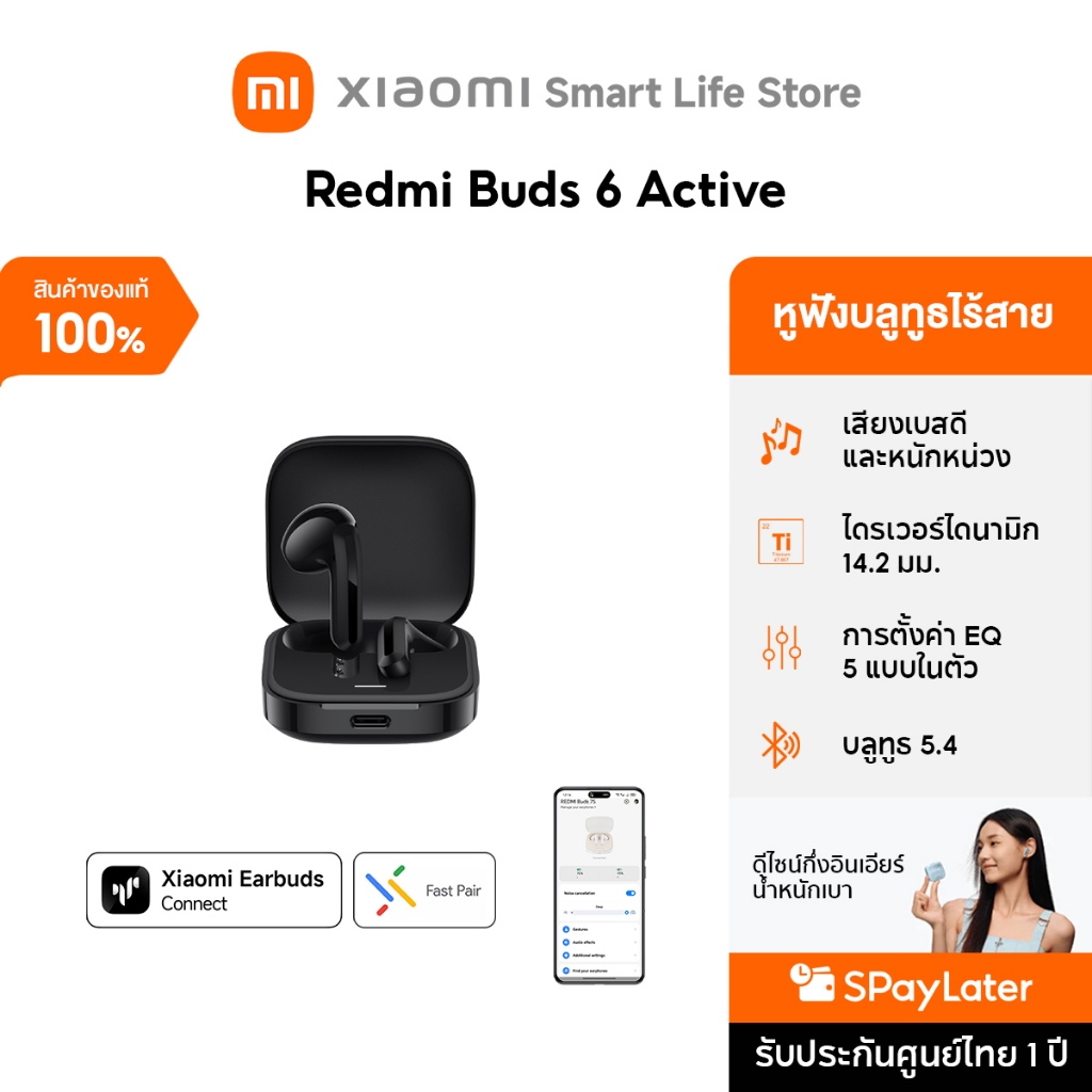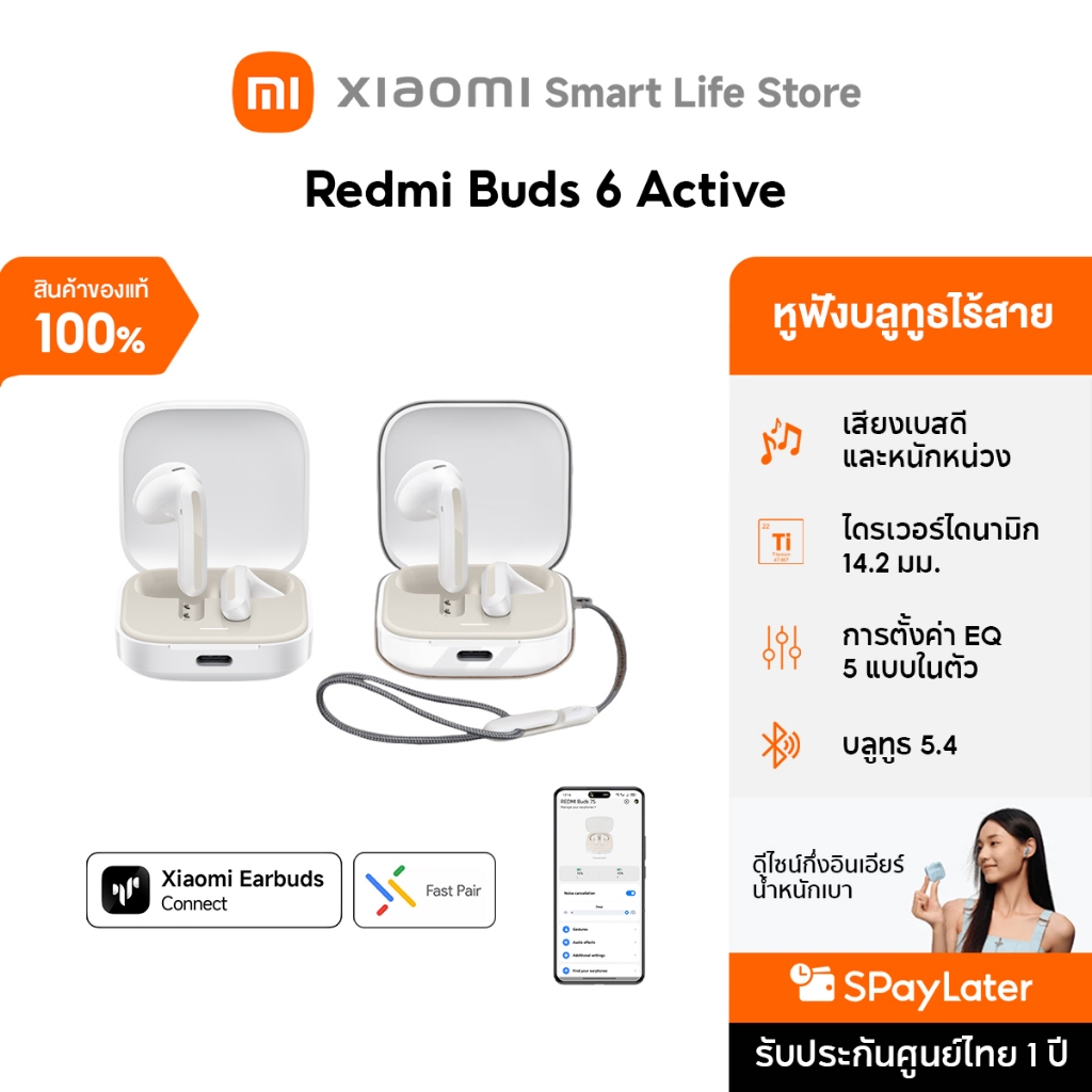 Xiaomi Redmi Buds 6 Active หูฟ ังบลูทูธ หูฟัง | บลูทูธ 5.4 | ไดรเวอร์ไดนามิกใหญ่ 14.2 มม | ลดเสียงรบกวนไมโครโฟนคู่