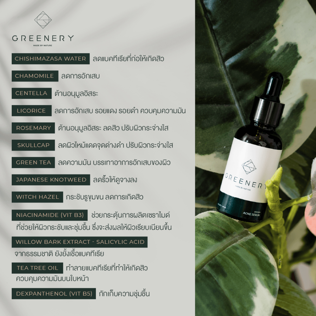 Greenery Acne/Pore/Dragon Blood กรีนเนอร์รี่ เซรั่ม [สิว/รูขุมขน/รอยแผลเป็น] เซรั่มลดสิว กระชับรูขุมขน ลดรอยแผลเป็น