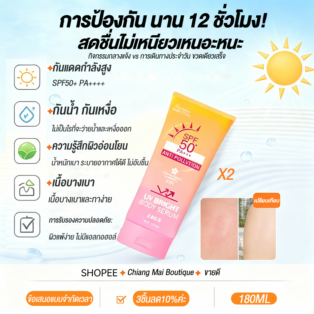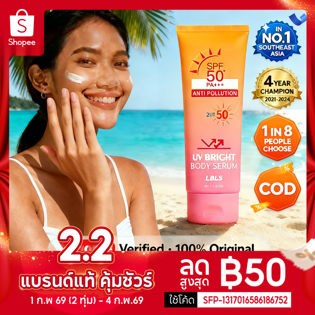 กันแดดหน้า กันน้ำ SPF50+PA++++ ป้องกันรังสียูวี เนื้อบางเบา ไม่อุดตันรูขุมขน เนื้อเนียน เกลี่ยง่าย เหมาะกับผิวแพ้ง่