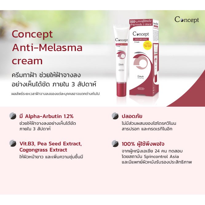 (ของแท้) Concept Anti-Melasma Plus cream คอนเซ็ปท์ ครีมทาฝ้า ขนาด 24 g AntiMelasma Melasma cream