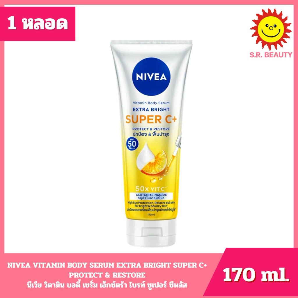 [ 1 หลอด ] Nivea นีเวีย เอ็กตร้าไบรท์ วิตามินโลชั่น ขนาด 170 มล.6สูตร