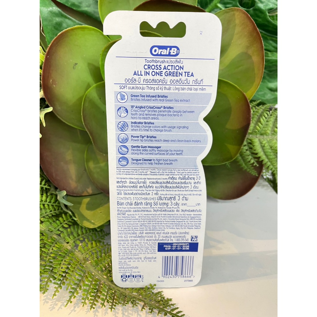 (2 แถม1)Oral-B cross action all in one green tea ออรัล-บี แปรงสีฟัน ครอสแอคชั่น ออลอินวัน กรีนที