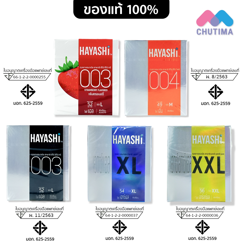 ถุงยางอนามัย ฮายาชิ ขนาด 49 - 56 มม. Hayashi Condoms Size 49 - 56 mm. **ไม่ระบุชื่อสินค้าหน้ากล่อง**