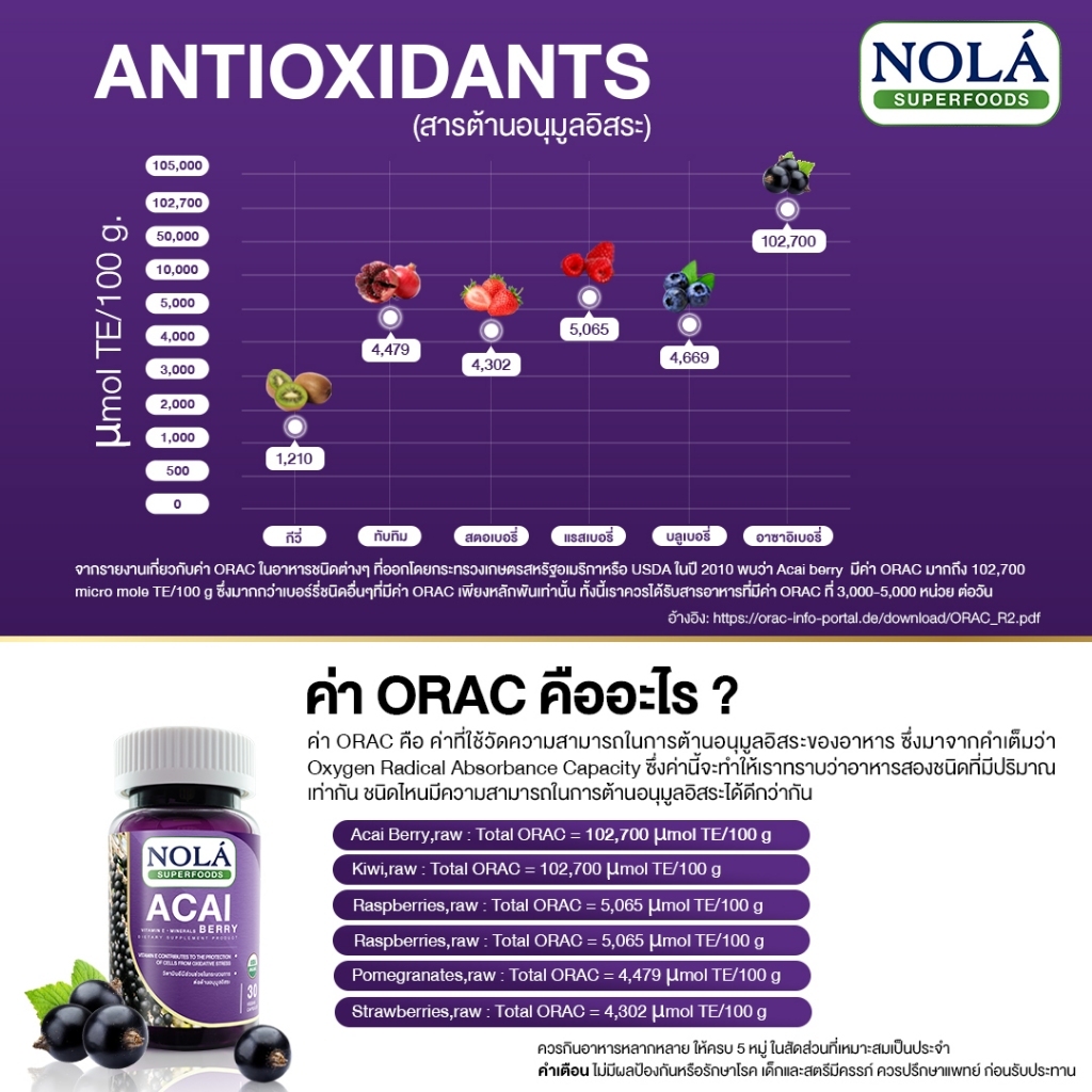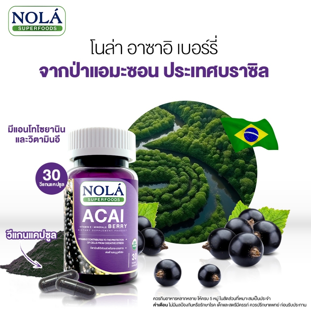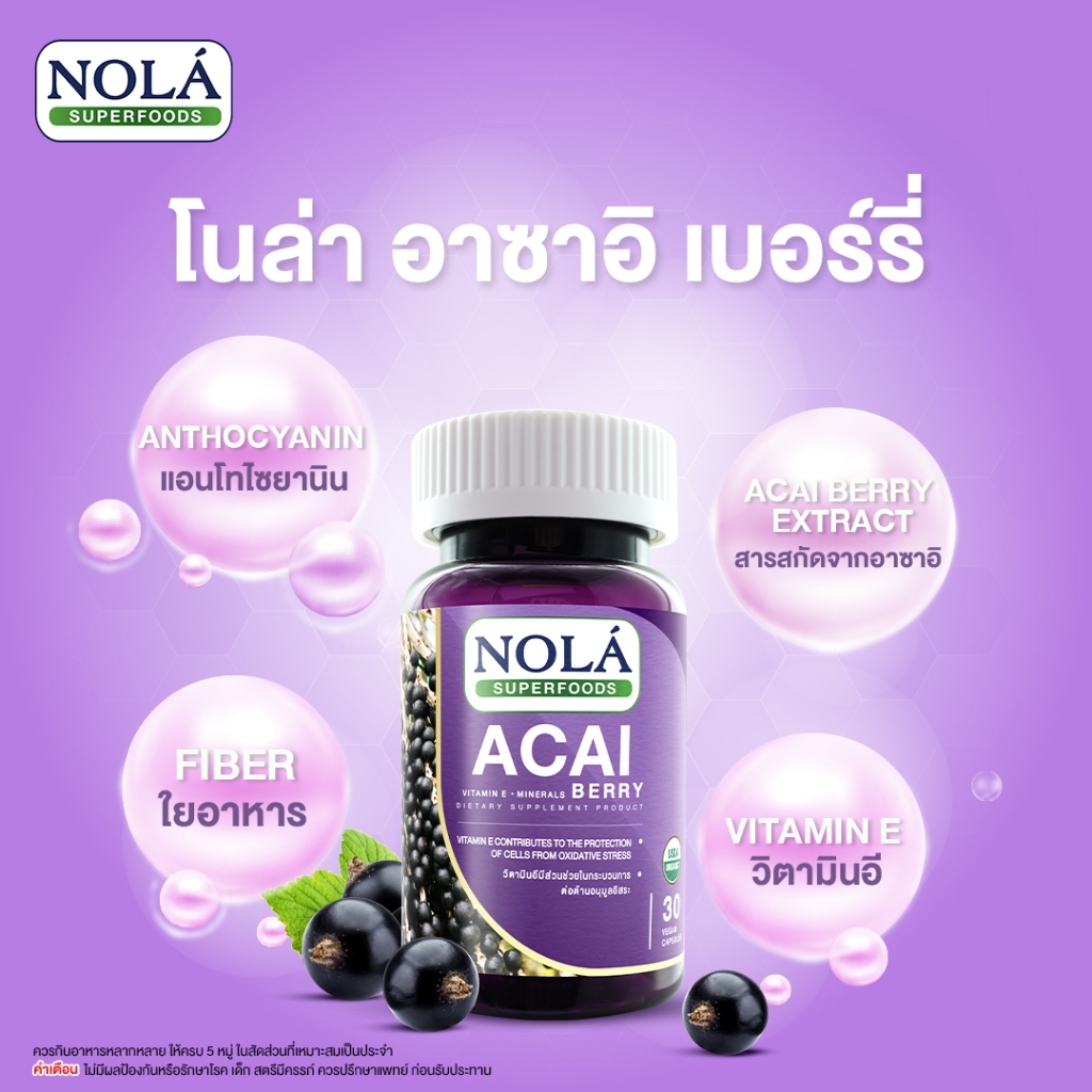 Nola Acai Berry 30 capsules - โนล่า อาซาอิ เบอร์รี่ ฟรีซดราย ขนาด 30 วีแกนแคปซูล
