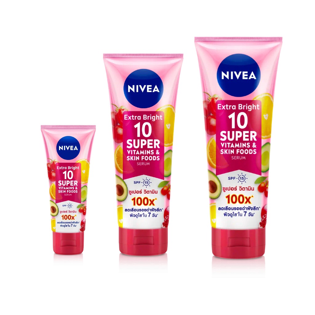 นีเวีย เอ็กซ์ตร้า ไบร์ท 10 ซุปเปอร์ วิตามิน แอนด์ สกินฟู้ด เซรั่ม 70 มล. / 180 มล. / 320 มล.