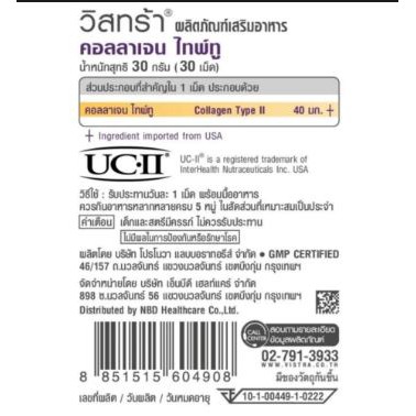 VISTRA COLLAGEN UC-II 40 MG (COLLAGEN TYPE II) (30 Tabs)
