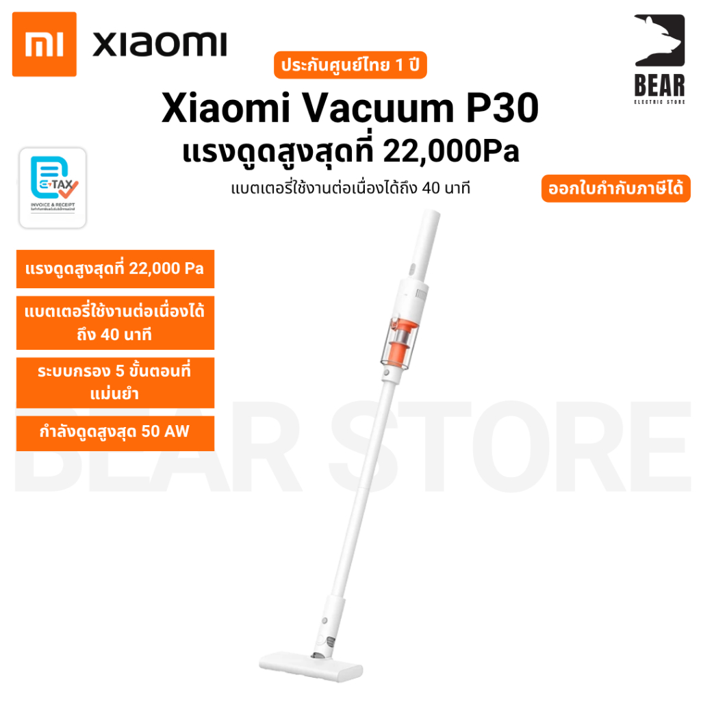 Xiaomi Vacuum P30 แรงดูดสูงสุดที่ 22,000Pa แบตเตอรี่ใช้งานต่อเนื่องได้ 40 นาที ประกันศูนย์ไทย 1 ปี
