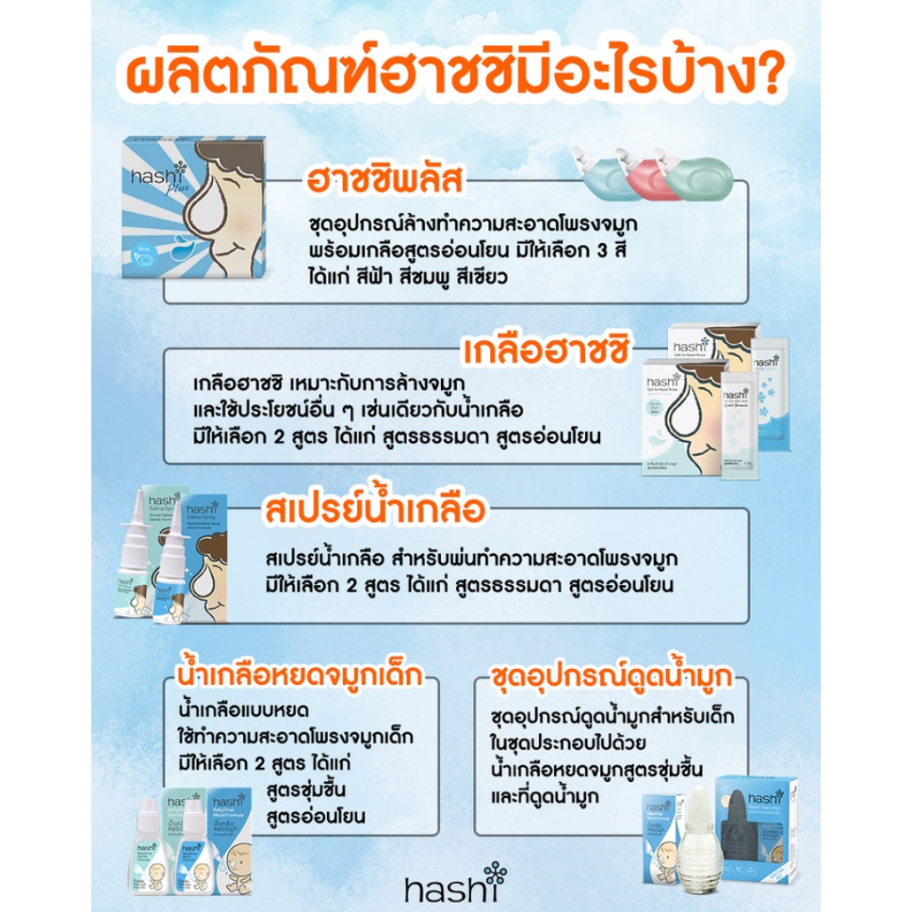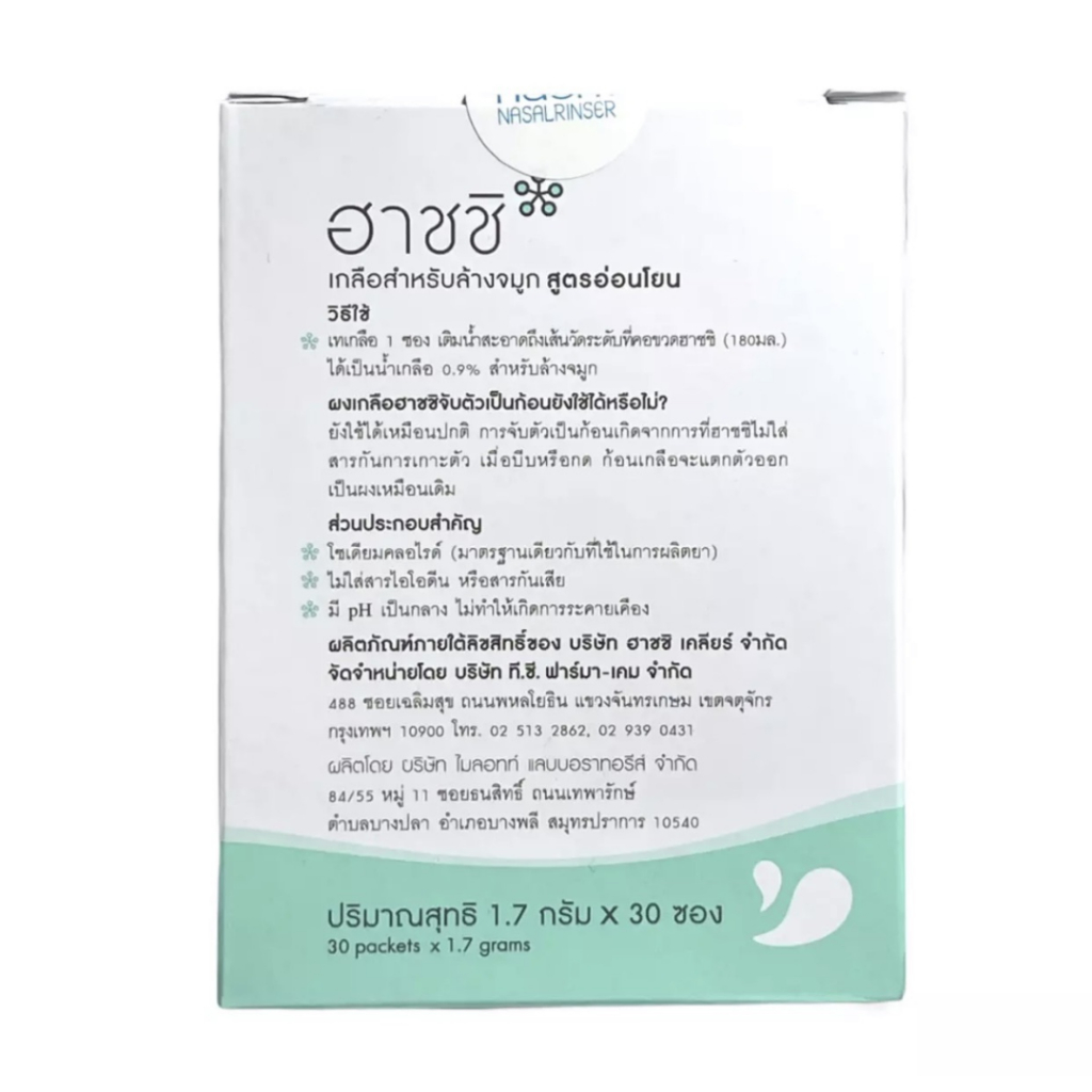 Hashi Refill Salt เกลือฮาชชิ สำหรับล้างจมูก สูตรอ่อนโยน(สีเขียว) จำนวน 1 กล่อง บรรจุ 30 ซอง สำหรับเด็ก 2 ปีขึ้นไป