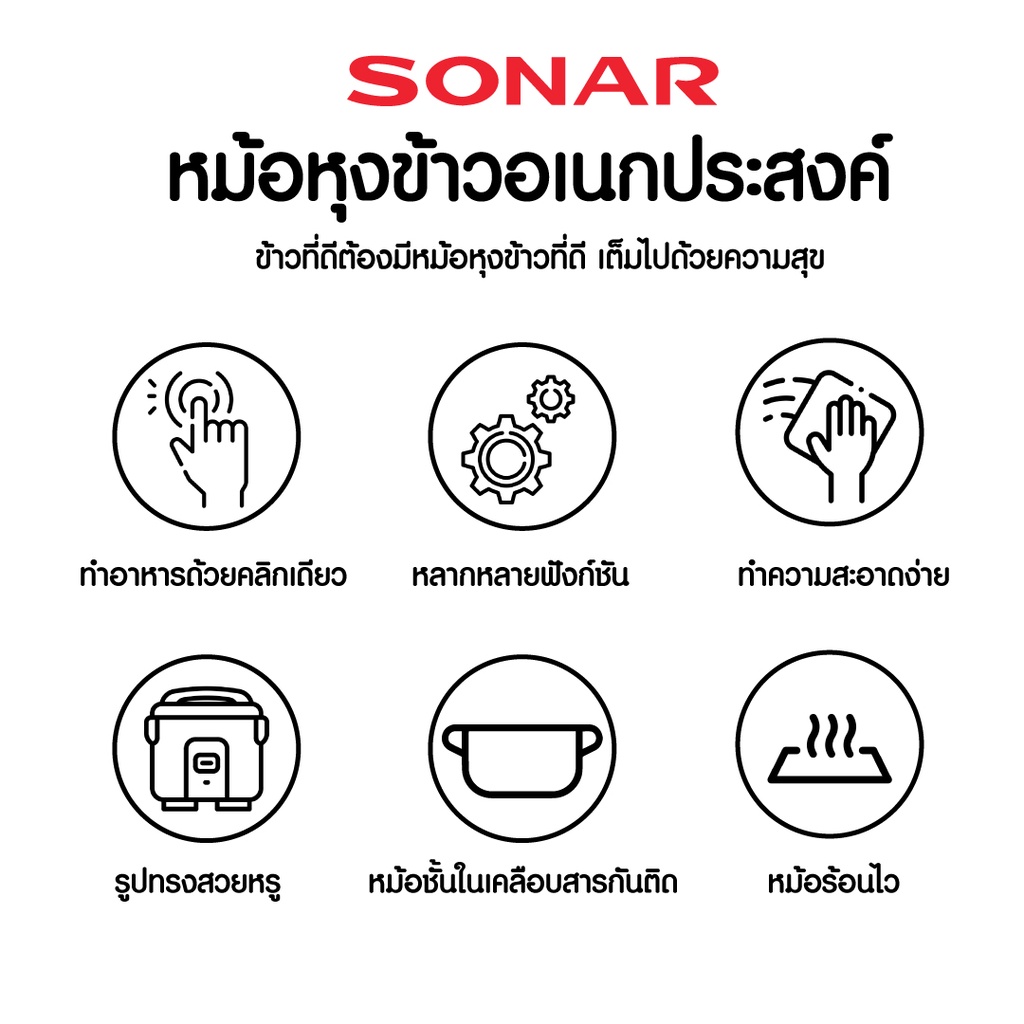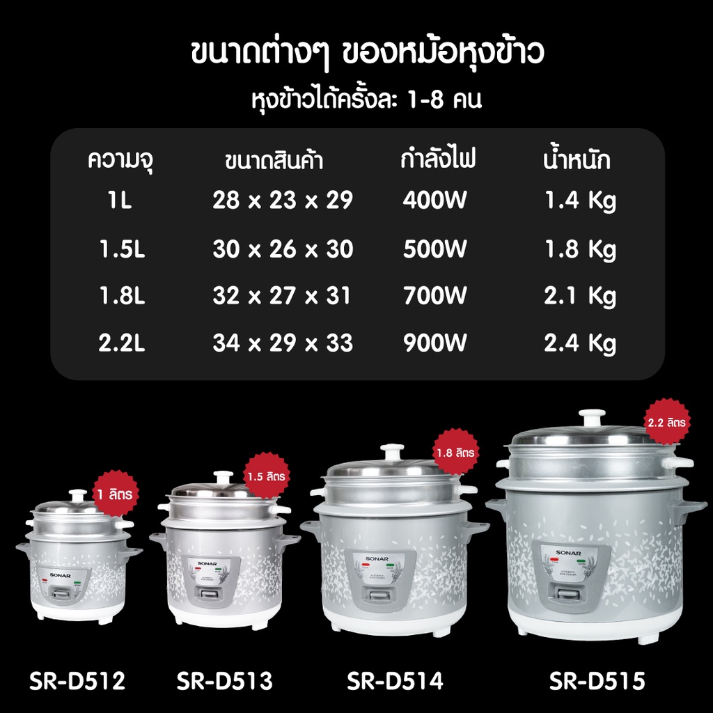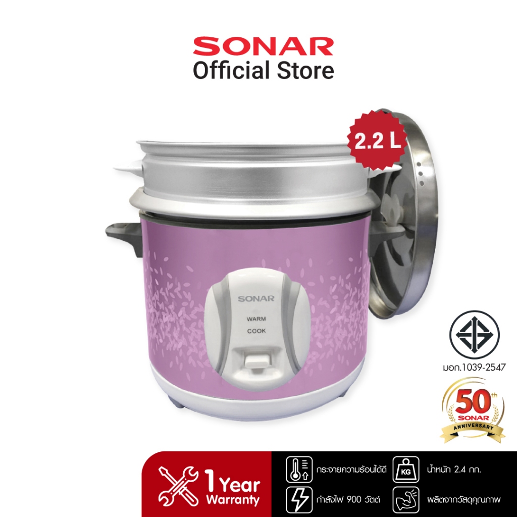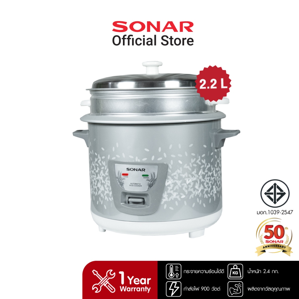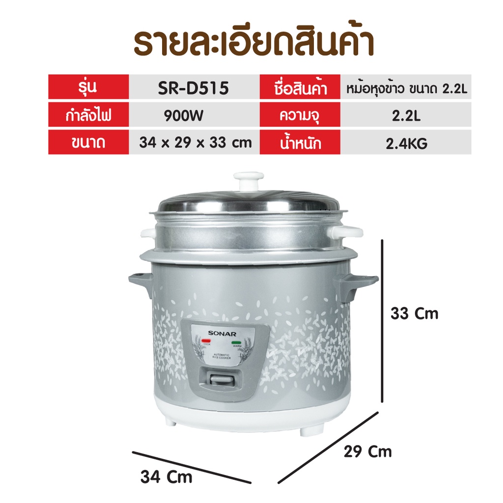SONAR หม้อหุงข้าวไฟฟ้า อเนกประสงค์ พร้อมซึ้งนึ่ง 2.2 ลิตร รุ่น SR-D515
