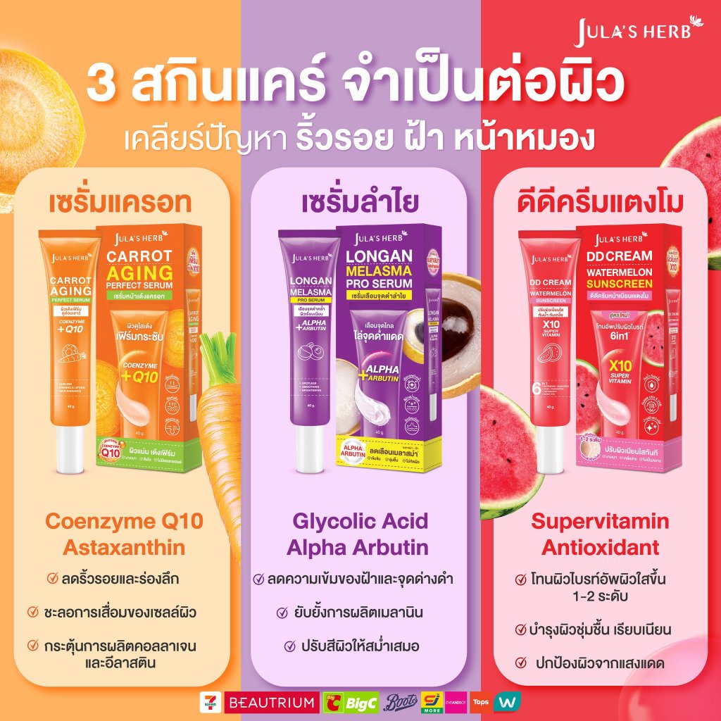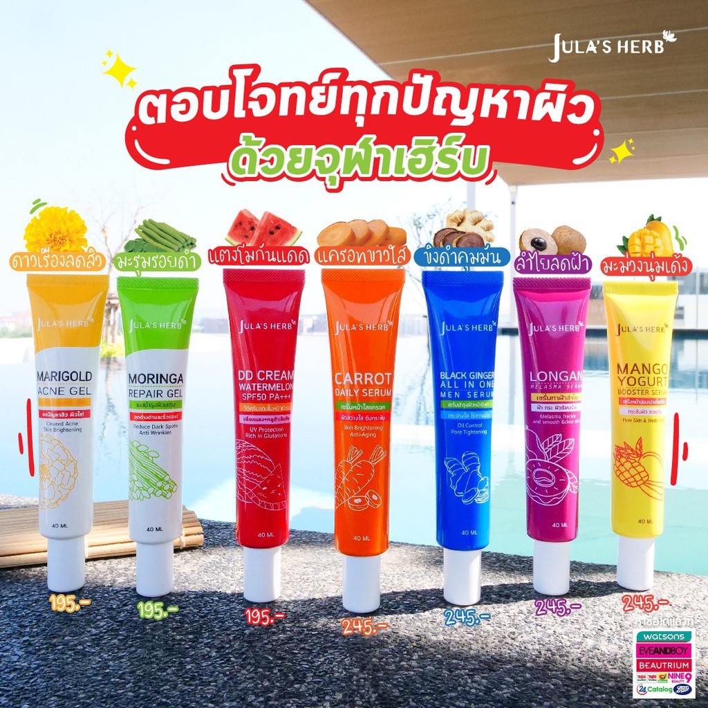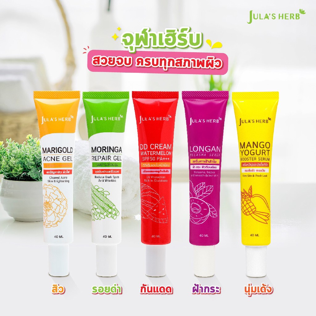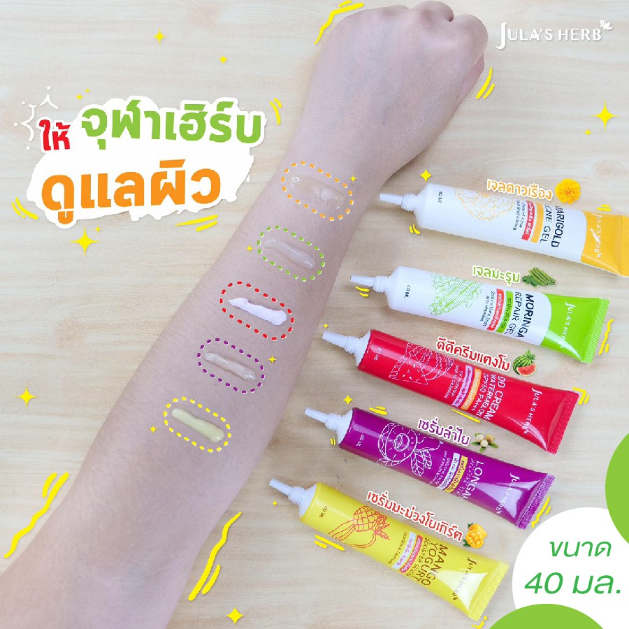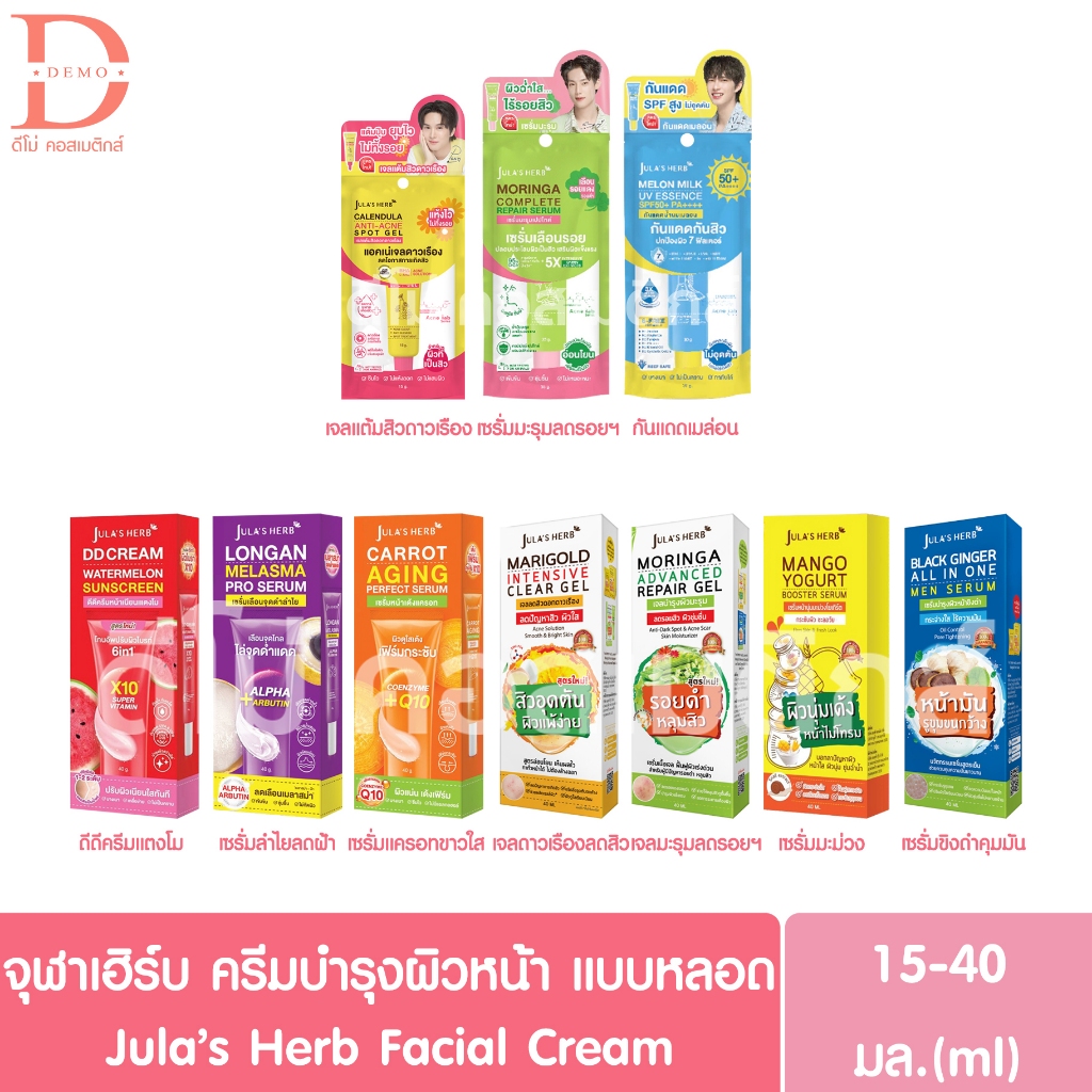 จุฬาเฮิร์บ ครีมบำรุงผิวหน้า 15-40มล. Jula’s Herb Facial Cream (DDแตงโม,เจลดาวเรือง,เจลมะรุม,เซรั่มลำไย,ขิงดำ)