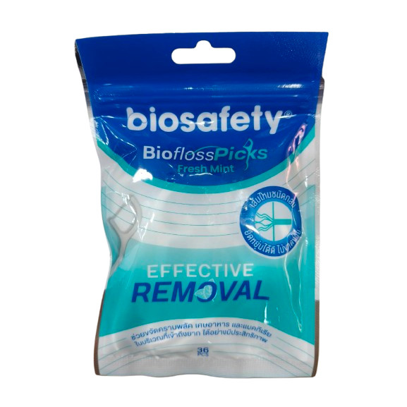 ไบโอเซฟตี้ ไหมขัดฟันชนิดด้าม ไบโอฟลอส กลิ่นเฟรชมินต์ 1 ซอง/36pcs