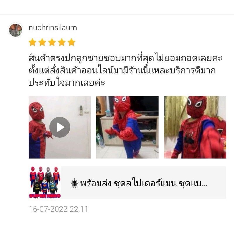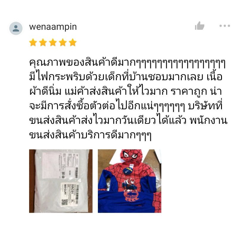 พร้อมส่ง ชุดสไปเดอร์แมน เด็ก ลิขสิทธิ์แท้ 100% ชุดซุปเปอร์ฮีโร่ ชุดยอดมนุษย์ Spiderman