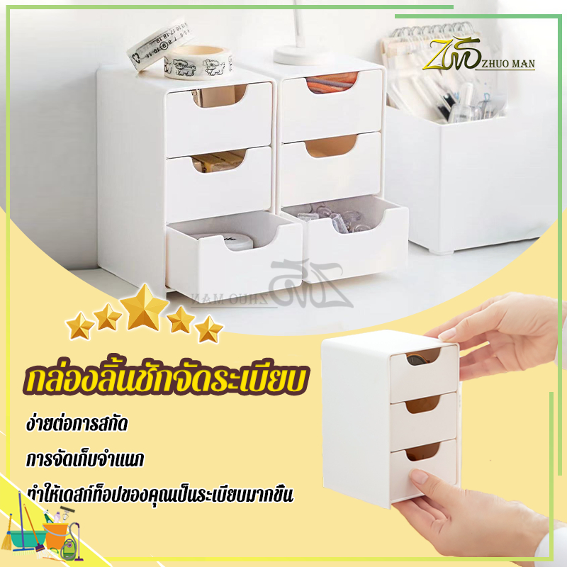 ลิ้นชักตั้งโต๊ะ ลิ้นชักเก็บของ กล่องลิ้นชัก กล่องเก็บของตั้งโต๊ะ กล่องลิ้นชักจัดระเบียบ มี3ช่องจำแนกจัดระเบียบได้ง่าย