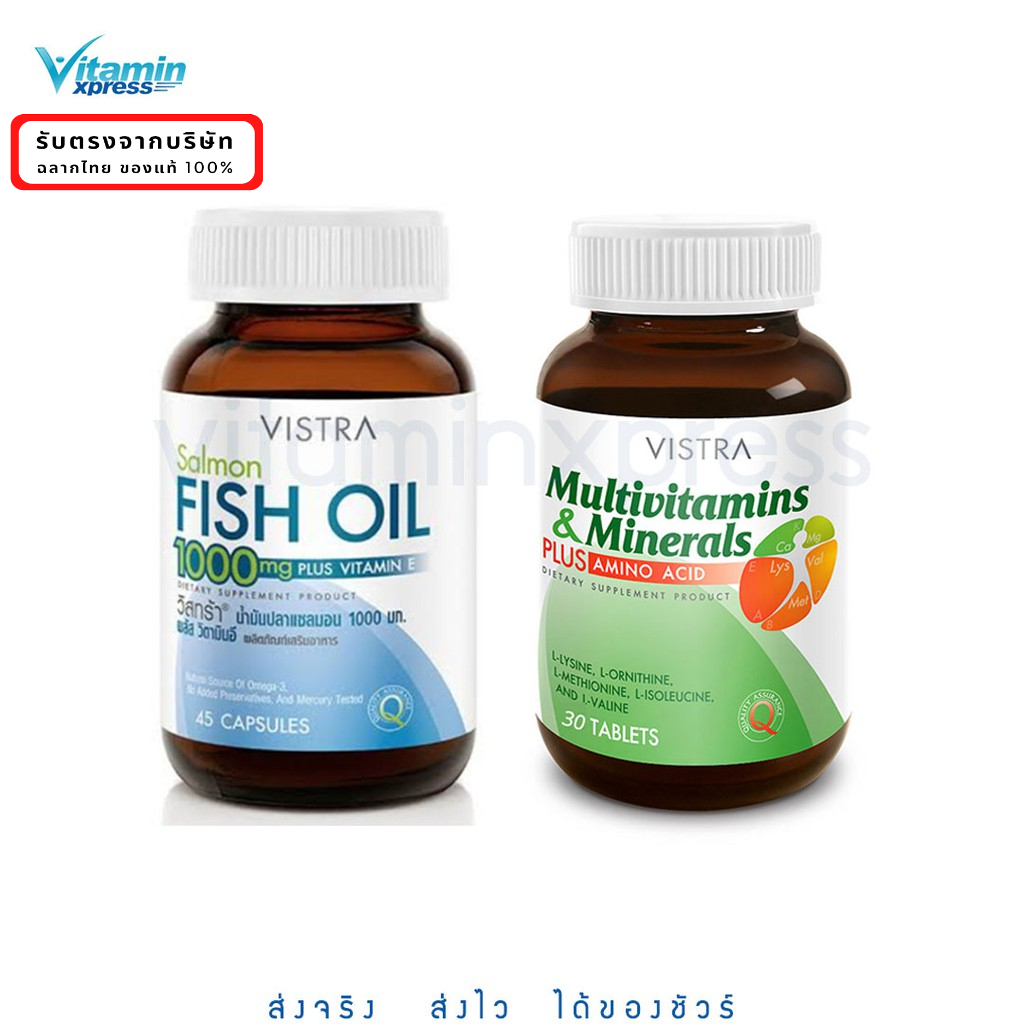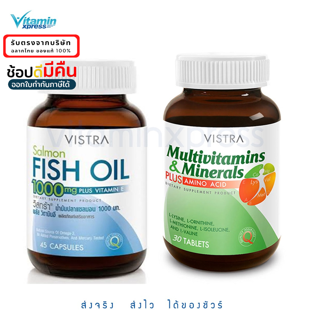Vistra Salmon fish oil 45 เม็ด 1 ขวด + Multivitamin Ultra Plus 30 เม็ด วิตามินรวม วิสทร้า