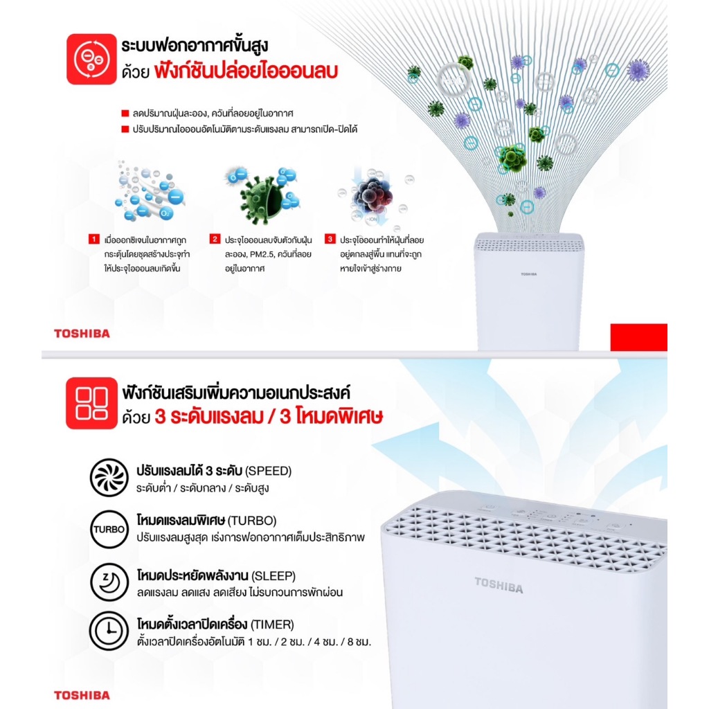 TOSHIBA เครื่องฟอกอากาศ 24 ตารางเมตร รุ่น CAF-H20(W) | ไทยมาร์ท THAIMART