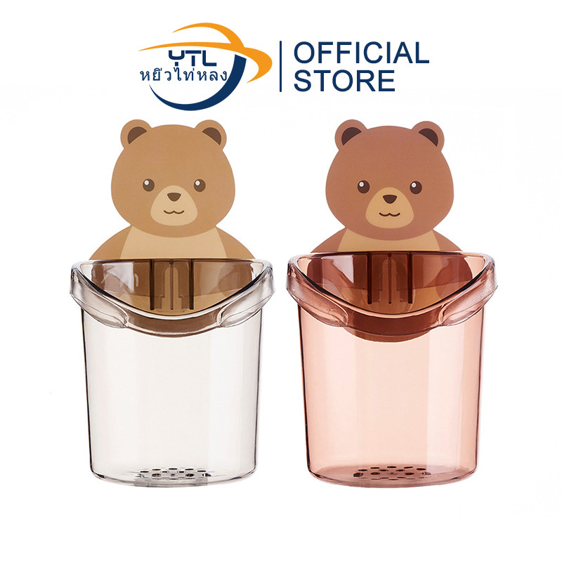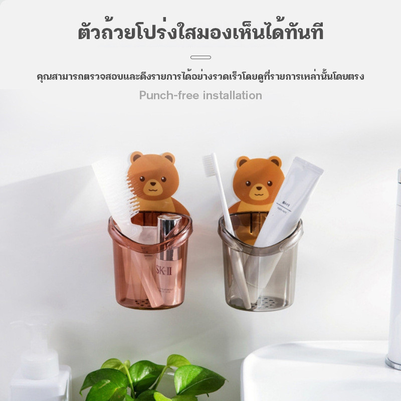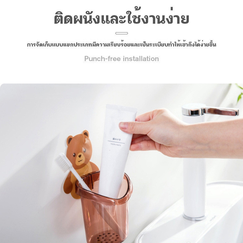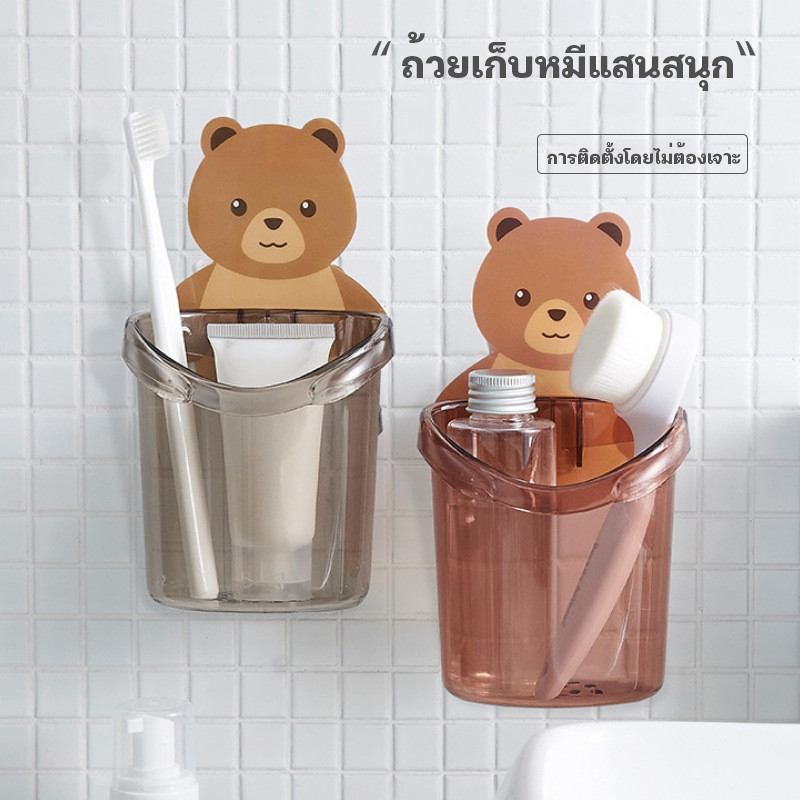 YTL ที่วางแปรงสีฟัน ชั้นวางของในห้องน้ำติดผนัง กล่องเก็บอุปกรณ์อาบน้ำ หมีน้อย แบบไม่เจาะ
