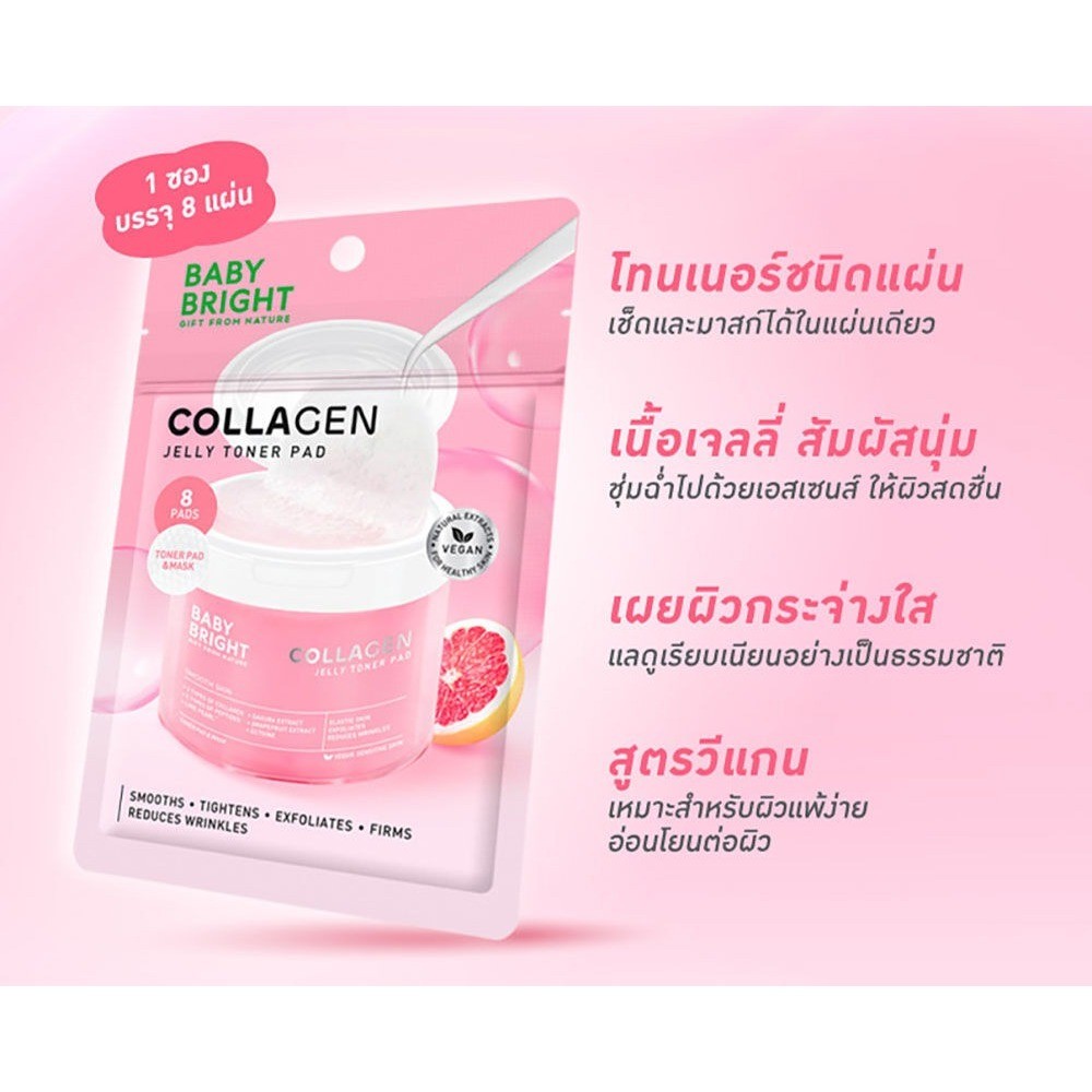 Baby Bright Collagen Jelly Toner Pad 8Pads เบบี้ไบร์ท โทนเนอร์แพดผิวไบร์ท สูตรวีแกน.