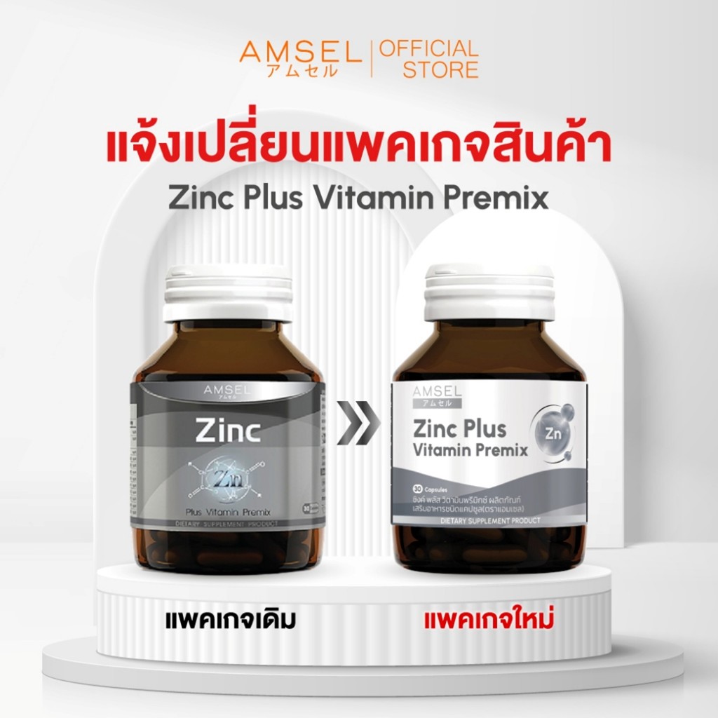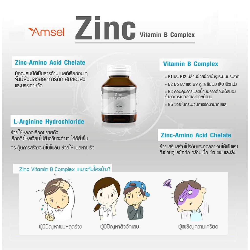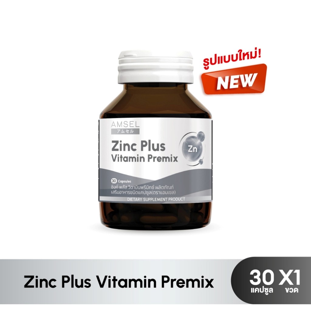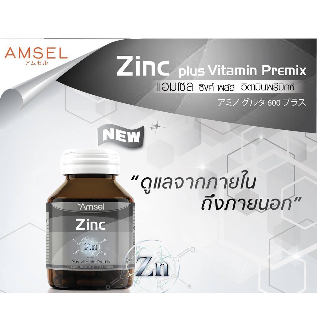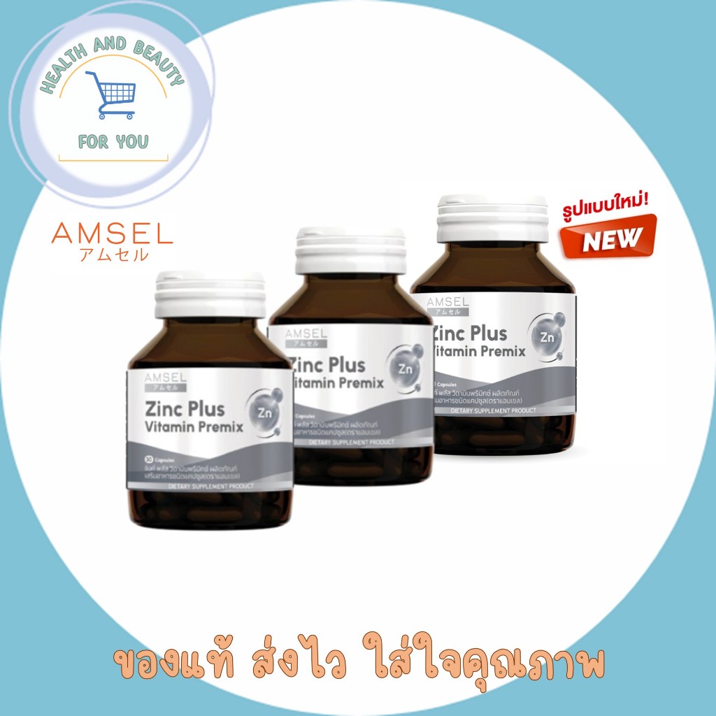 Amsel Zinc Vitamin Plus 30 แคปซูล รูปแบบอะมิโน แอซิด คีเลท ดูดซึมได้ดีกว่าทั่วไปถึง 5 เท่า (3ขวด)