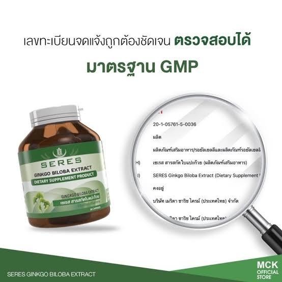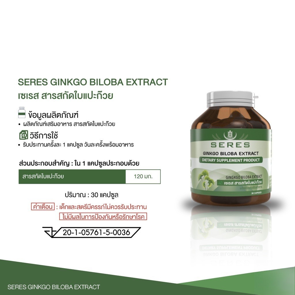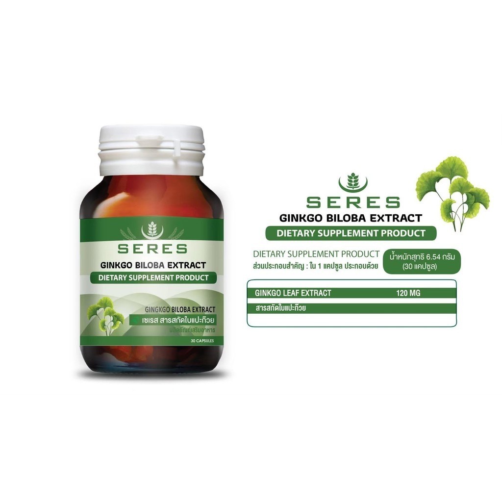 Seres Ginkgo Biloba สารสกัดใบแปะก๊วยเข้มข้น 30 แคปซูล [PC]