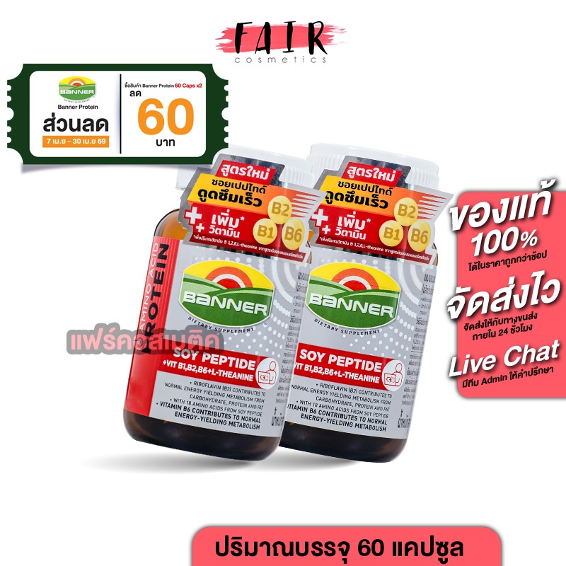 [2 ขวด] Banner Protein แบนเนอร์ โปรตีน 60 แคปซูล [ขวดใหญ่-สีแดง] สูตรใหม่