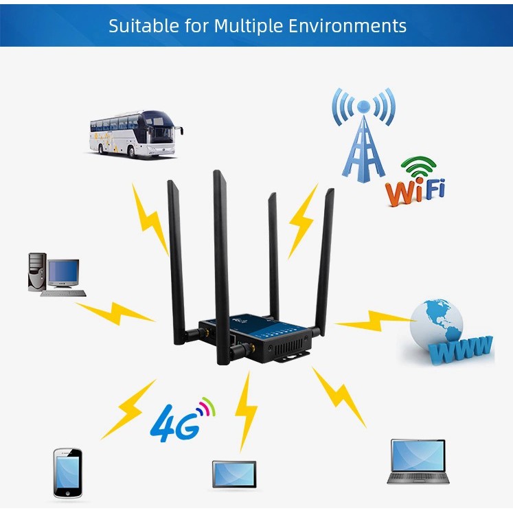 4G Router 300Mbps Industrial 4 Detachable Antennas SMA Port SIM Card Slot Easy Setup Plug Play Wireless Router