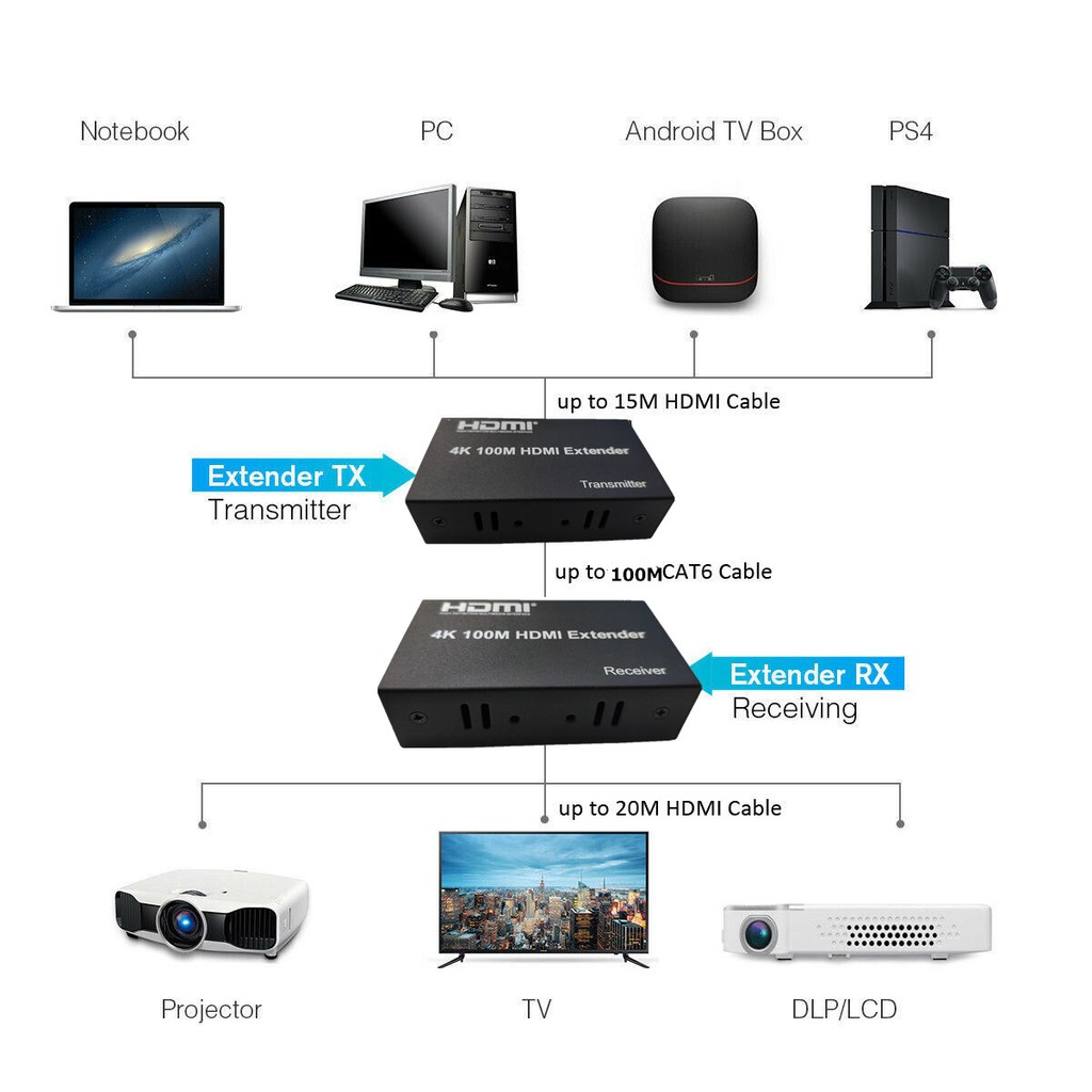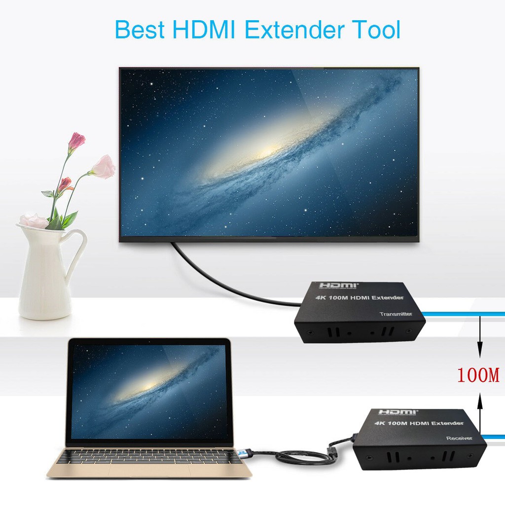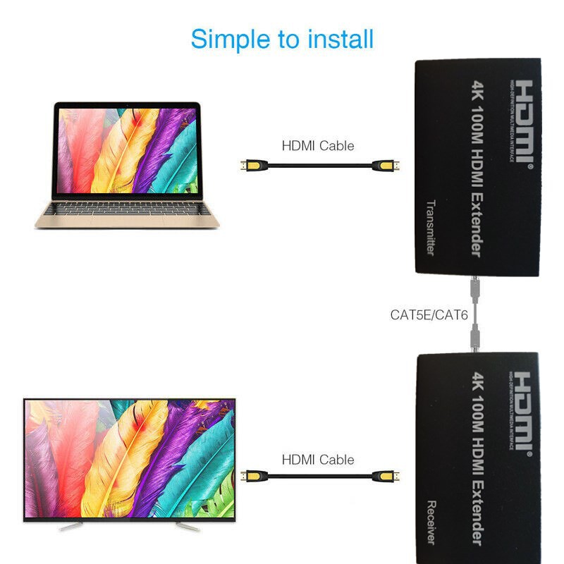 4K HDMI Extender 100M Port LAN RJ45 Network Cable Extender Over by Cat 5e/6 1080p Black