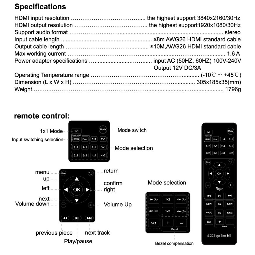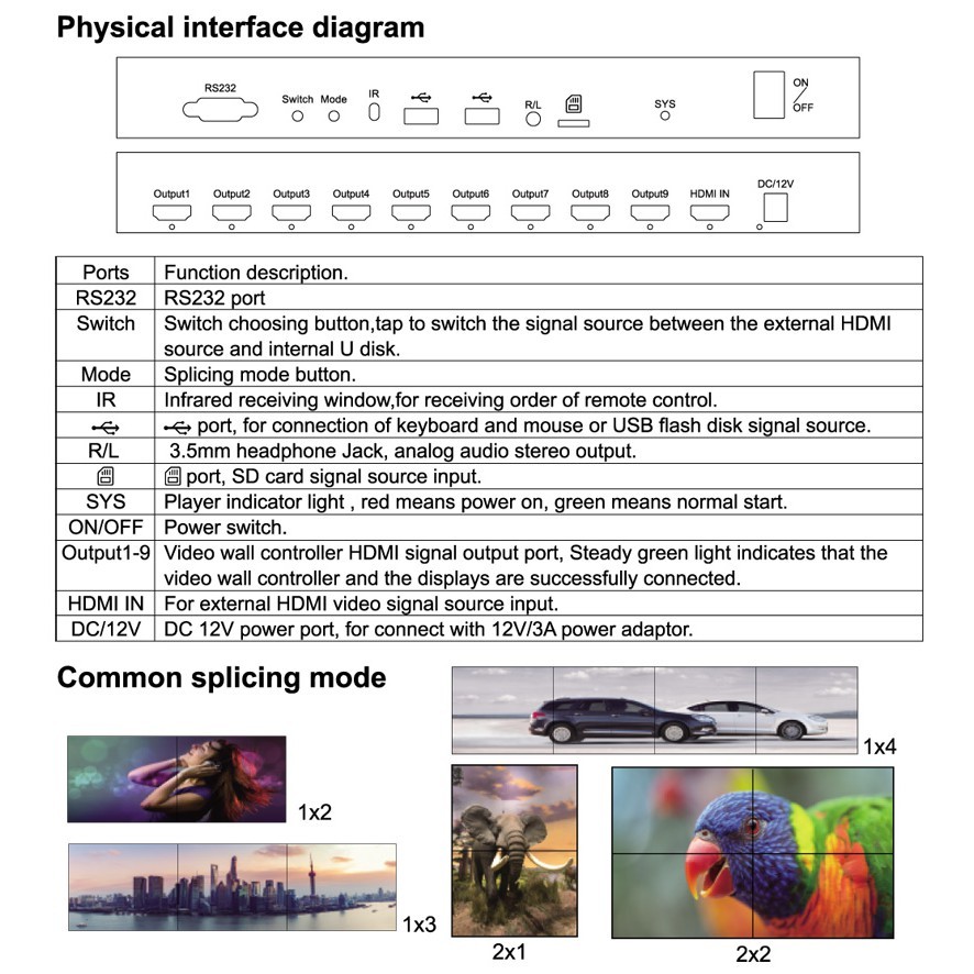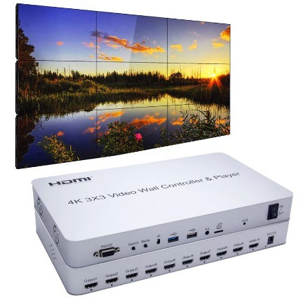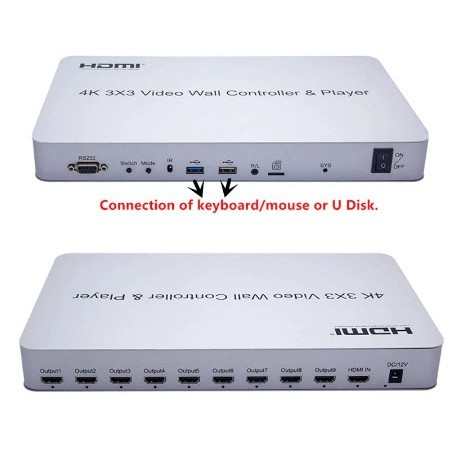 4K HDMI USB Video Wall Controller Player 3x3 Switch 1080P HDTV /Usb video wall Processor IR/RS232 Control For Public LCD