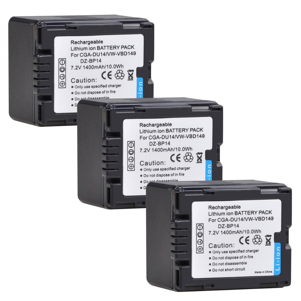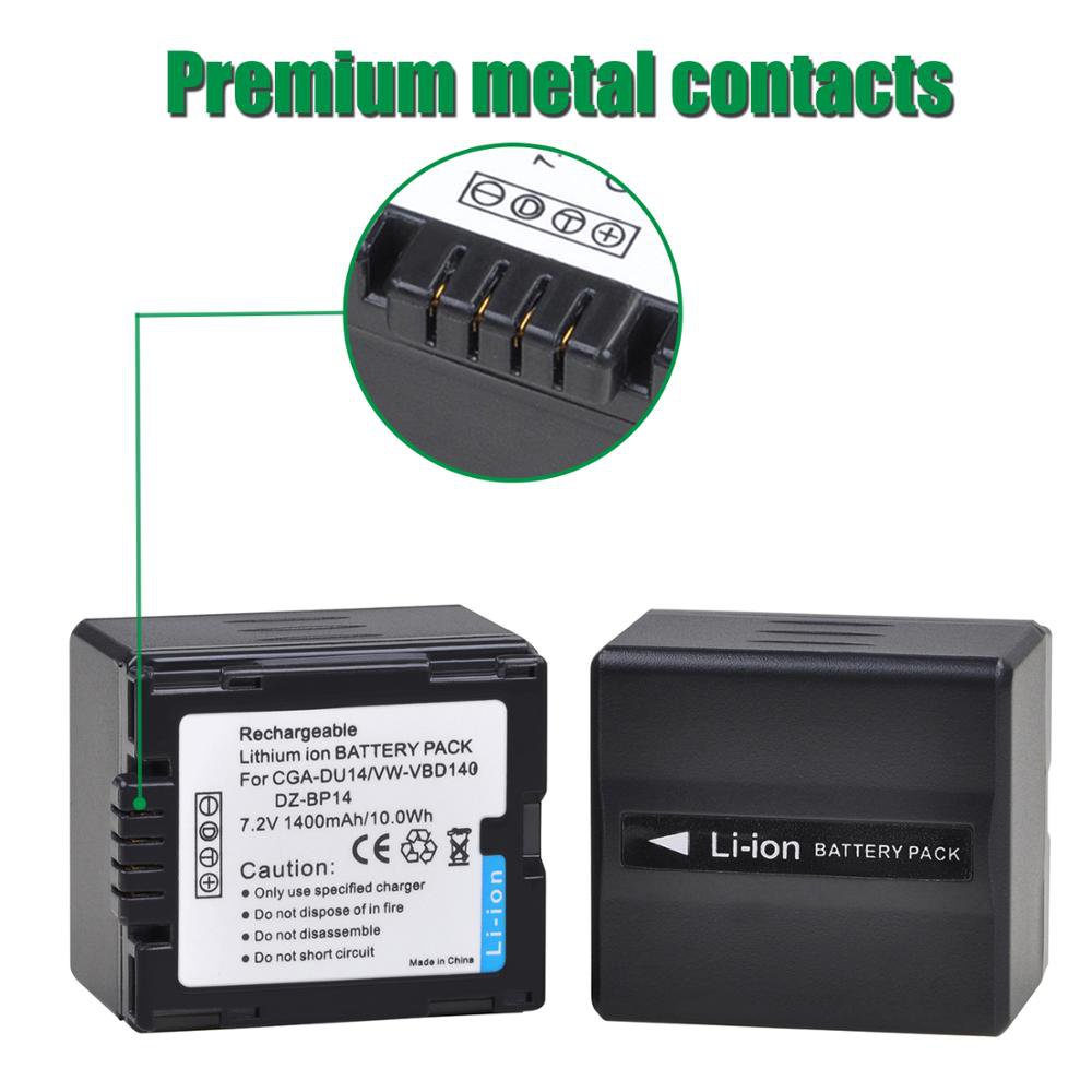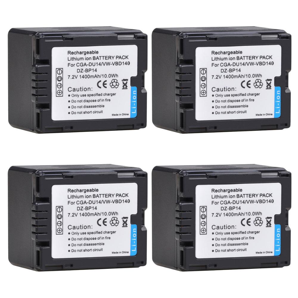 4Pcs 1400mAh CGA-DU14 Battery for PANASONIC CGR-DU06 DU07 DU12 DU21 NV-GS10 GS100K GS17E PV-GS65 VW-VBD140 DZ-BP14+LED C