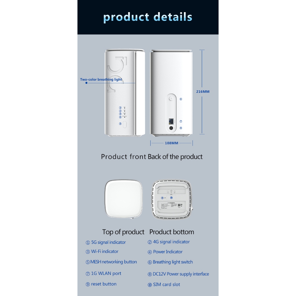 5G CPE WiFi 6 Router 2.2Gbps 5G Experience