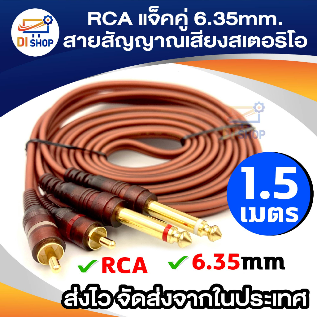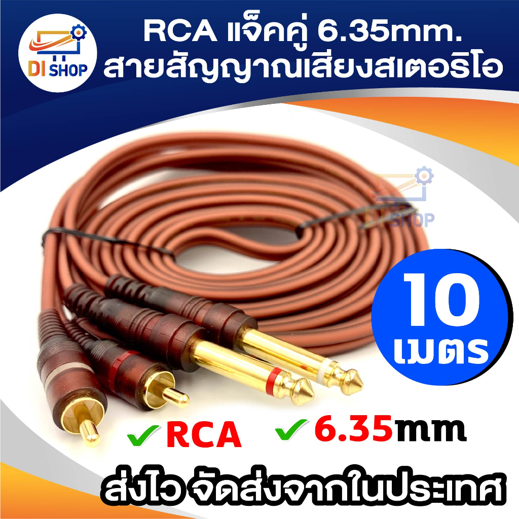 5ft Dual RCA Male Jack to Dual 6.35mm 1/4" TRS Male Plug Stereo Audio Cable Cord Wire for Mixer AV Amplifier 3m