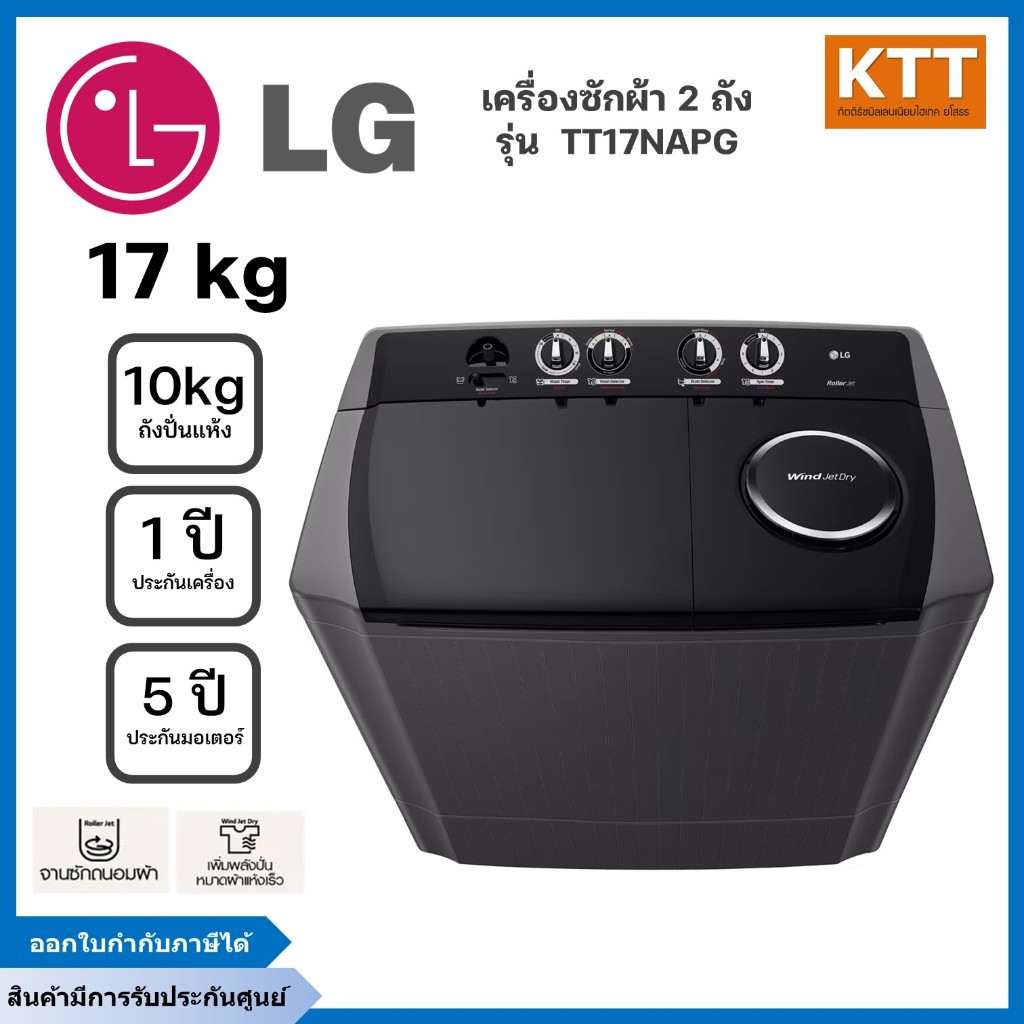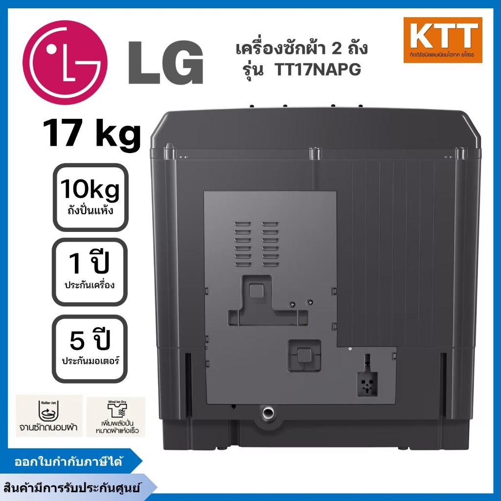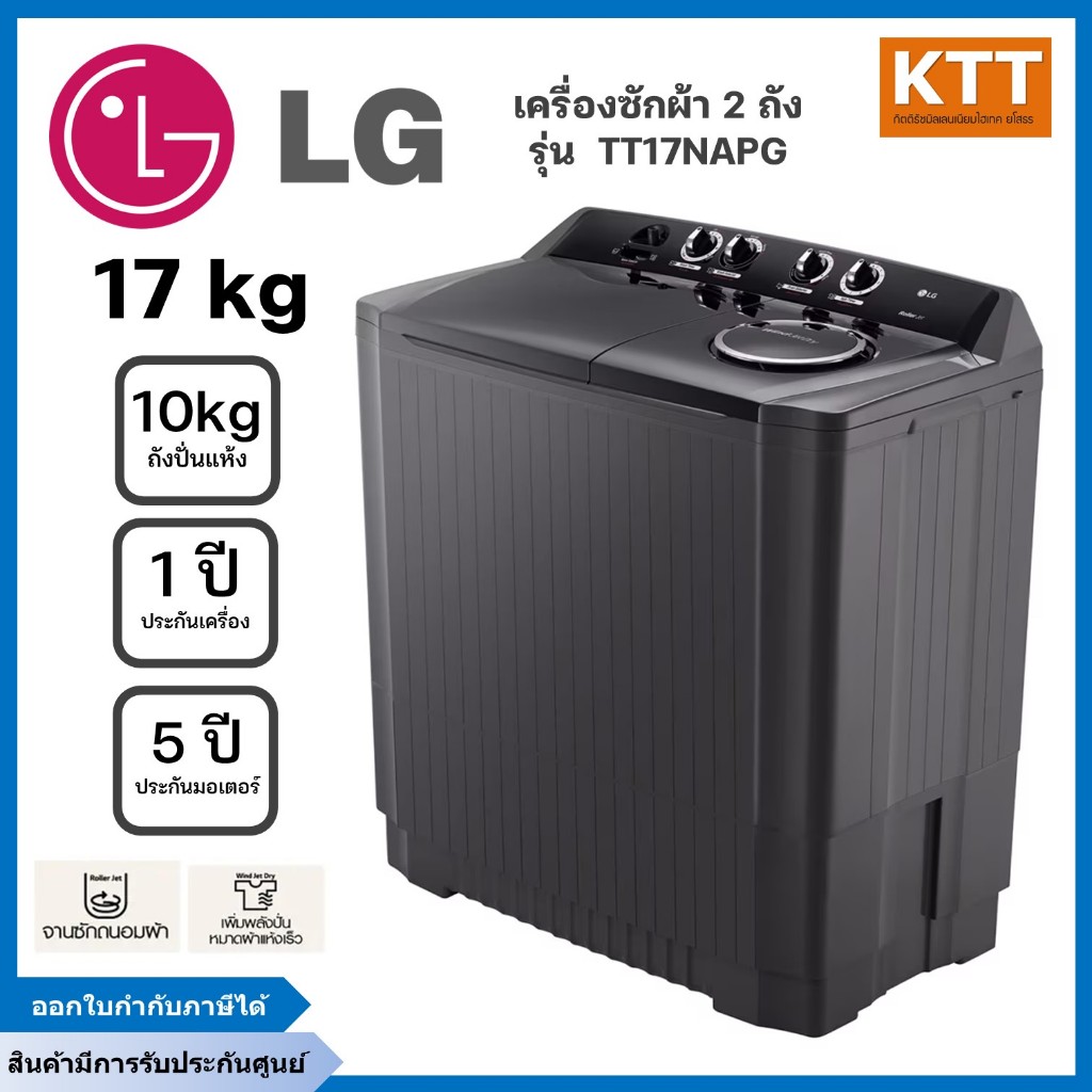 LG เครื่องซักผ้า 2 ถัง รุ่น TT17NAPG 17 กก. ปั่นแห้ง 10 กก. ระบบ Roller Jet