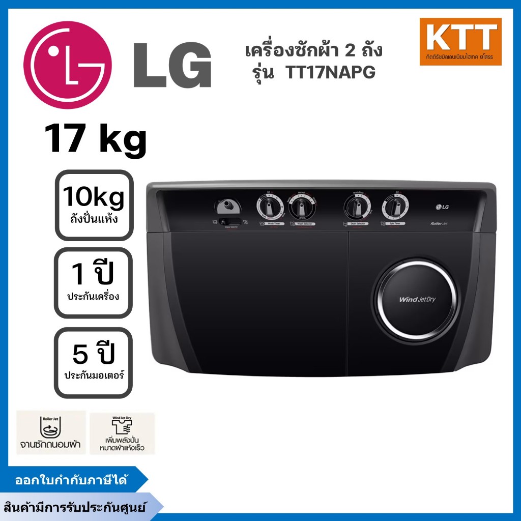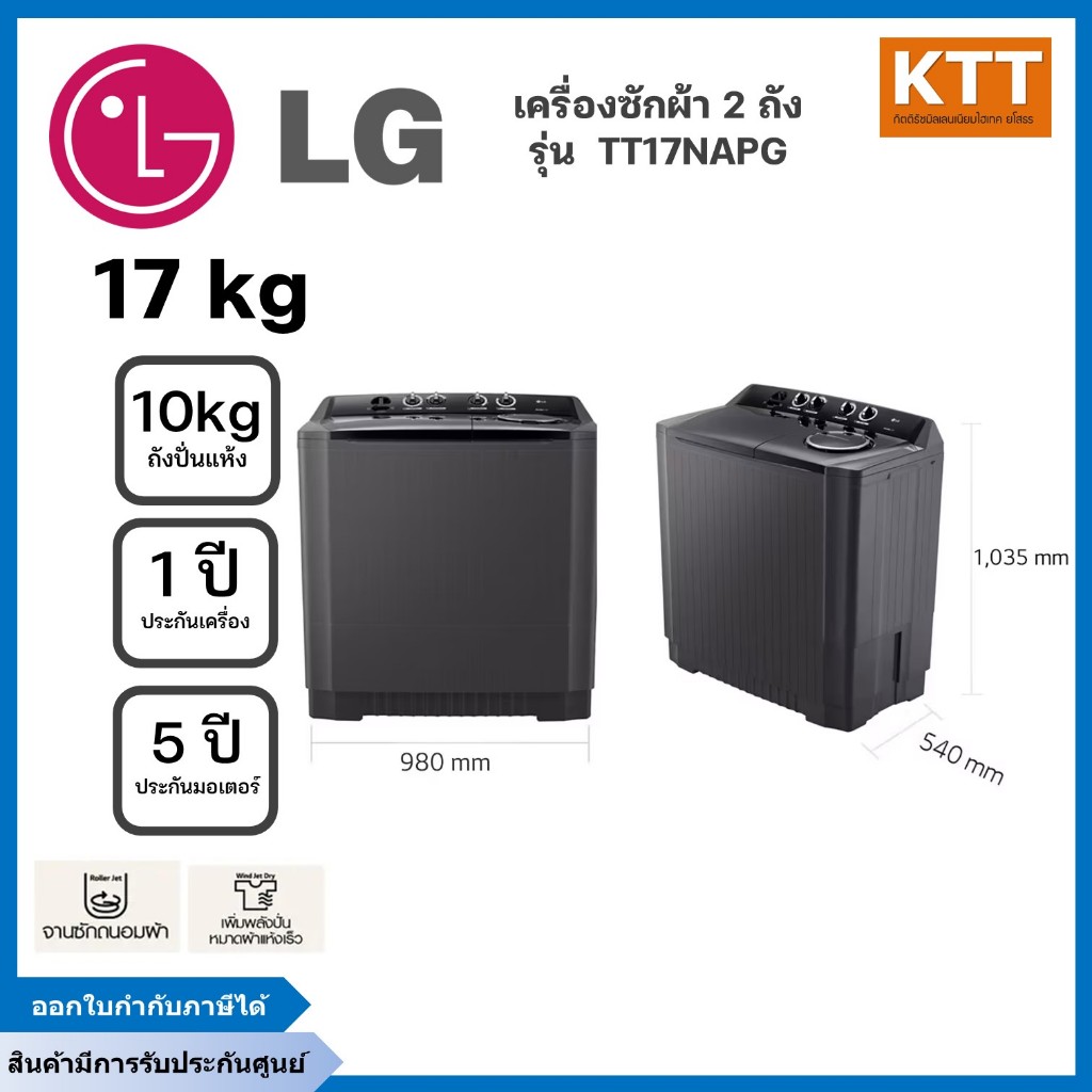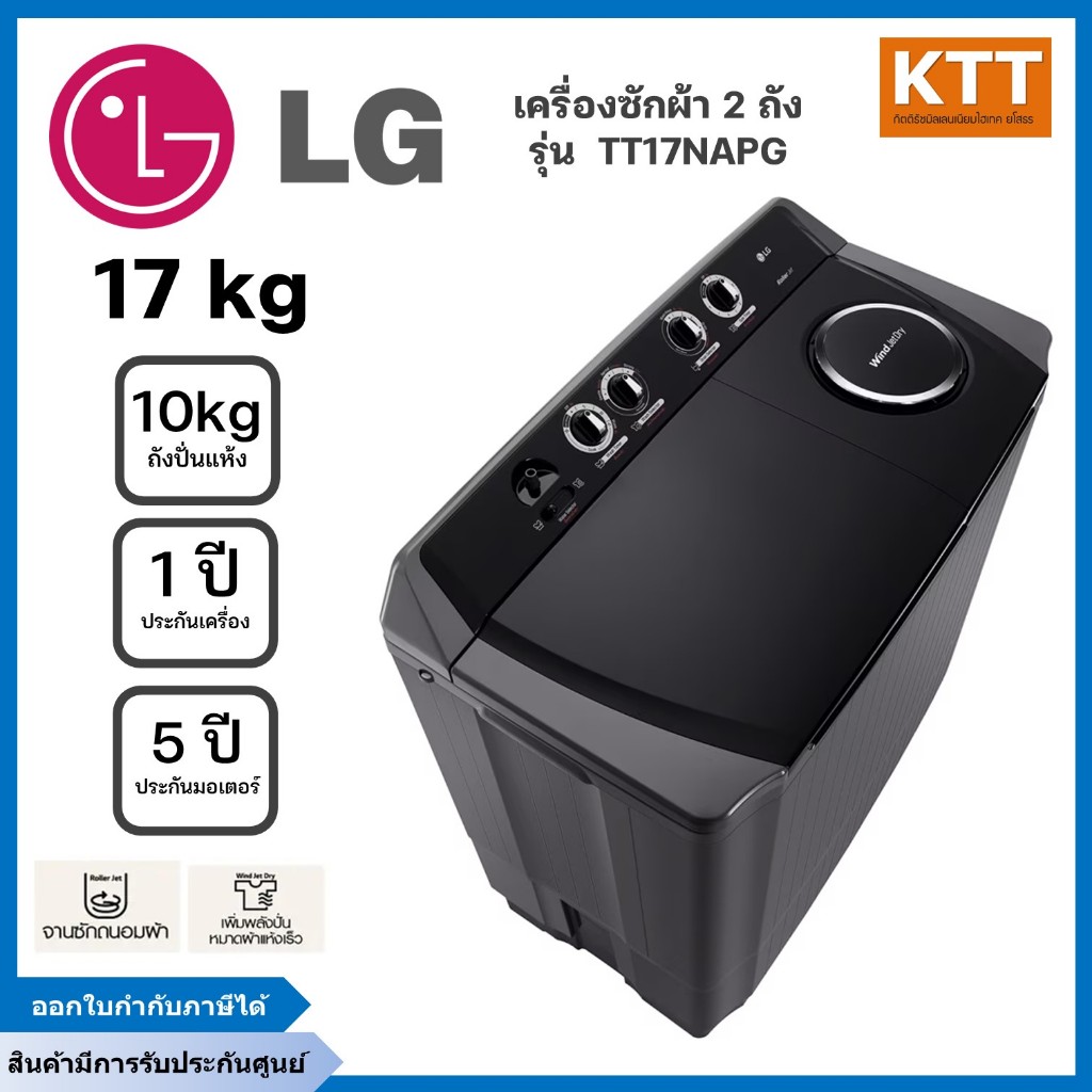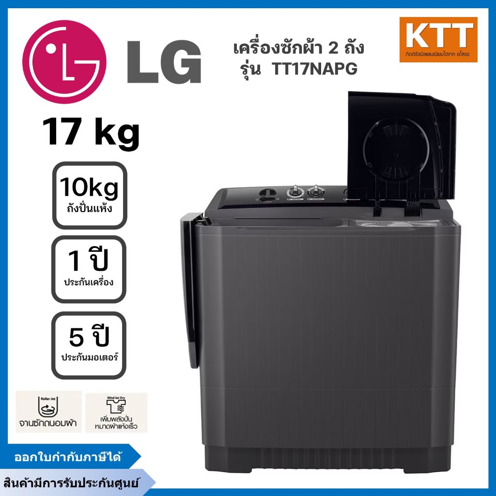 LG เครื่องซักผ้า 2 ถัง รุ่น TT17NAPG 17 กก. ปั่นแห้ง 10 กก. ระบบ Roller Jet
