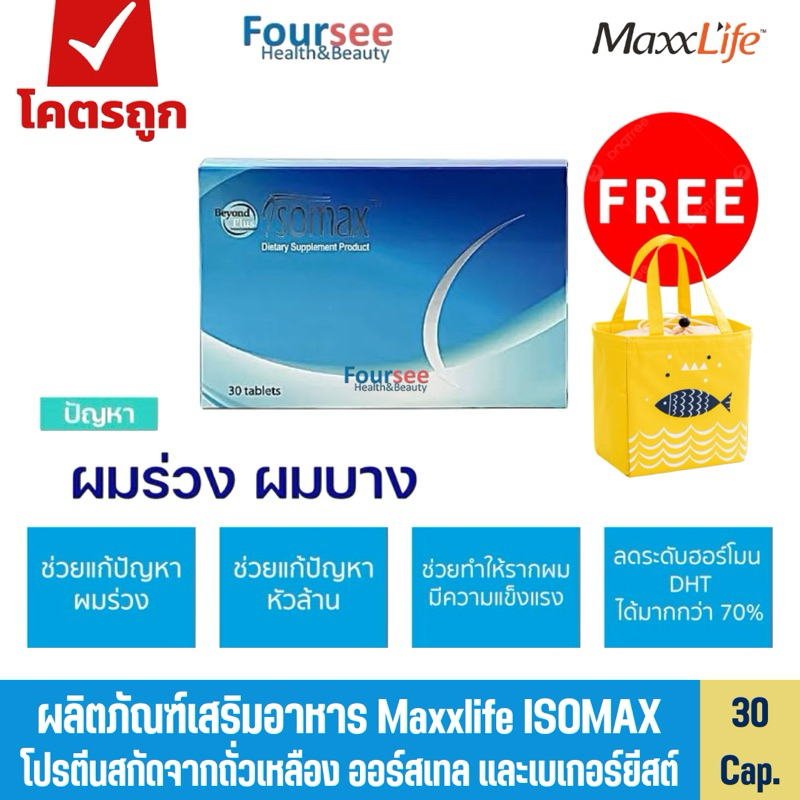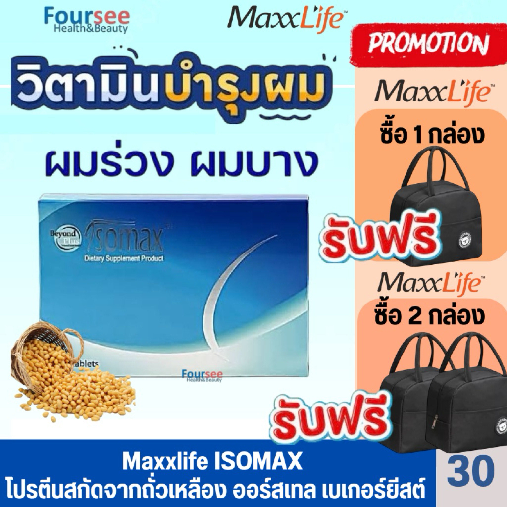 📌Maxxlife ISOMAX โปรตีนจากถั่วเหลือง แก้ปัญหาหนังศีรษะล้าน ผมบาง ผมร่วง 30 เม็ด