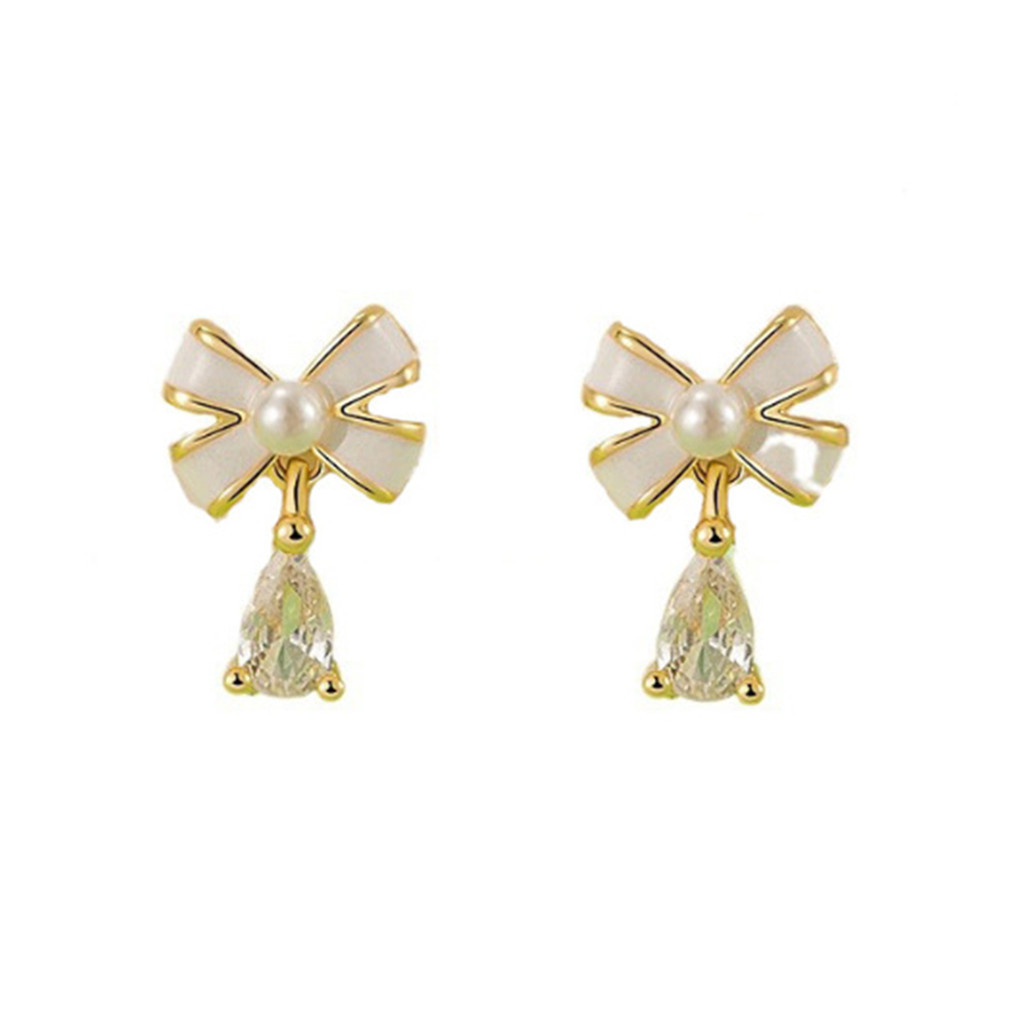 ต่างหูเงิน ประดับโบว์ เพทาย มุก ดาว ขนาดเล็ก น่ารัก สําหรับผู้หญิง YUE