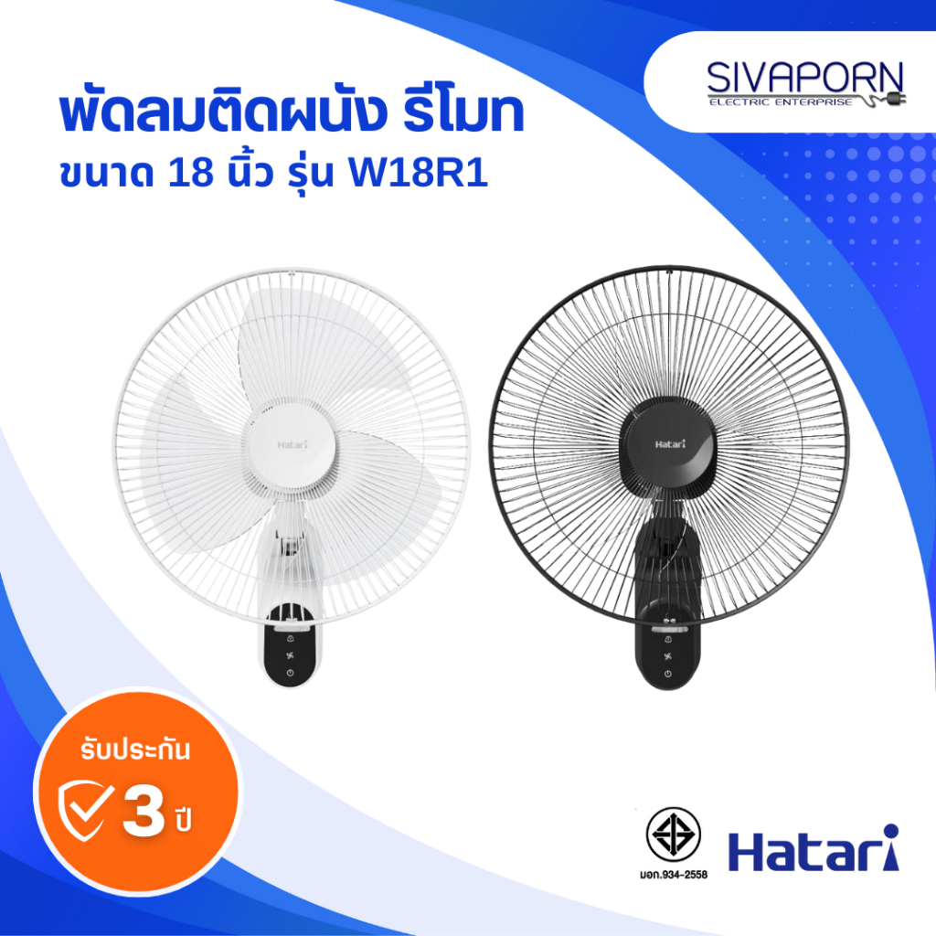 [รุ่นใหม่] HATARI พัดลมติดผนังแบบรีโมท ขนาด 18 นิ้ว รุ่น W18R1