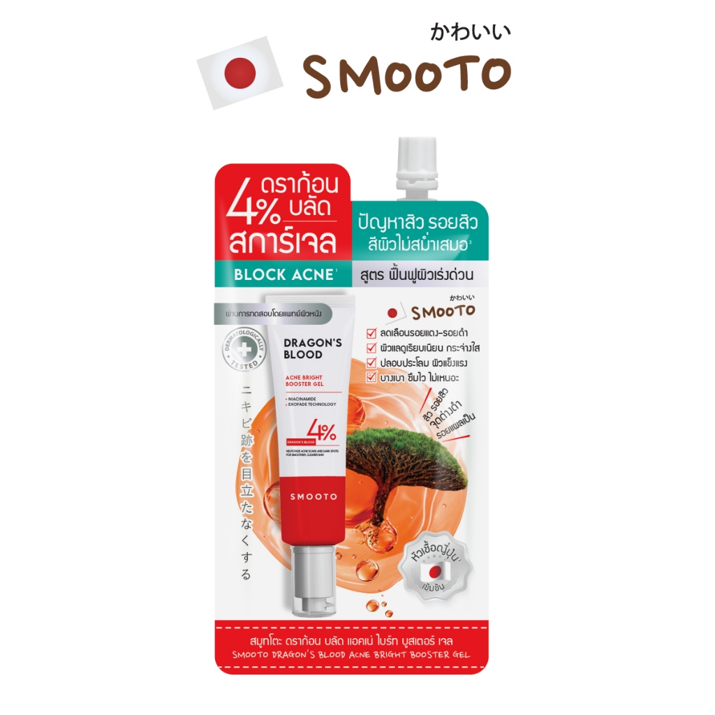 SMOOTO Official สมูทโตะ ดราก้อน บลัด แอคเน่ ไบร์ท บูสเตอร์ เจล(ซอง)