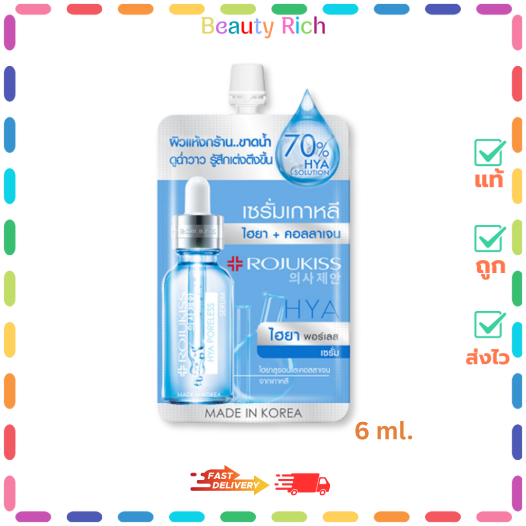 (1 ซอง) Rojukiss Hya Poreless Collagen Serum - โรจูคิส ไฮยา พอร์เลส คอลลาเจน เซรั่ม (6 ml.)