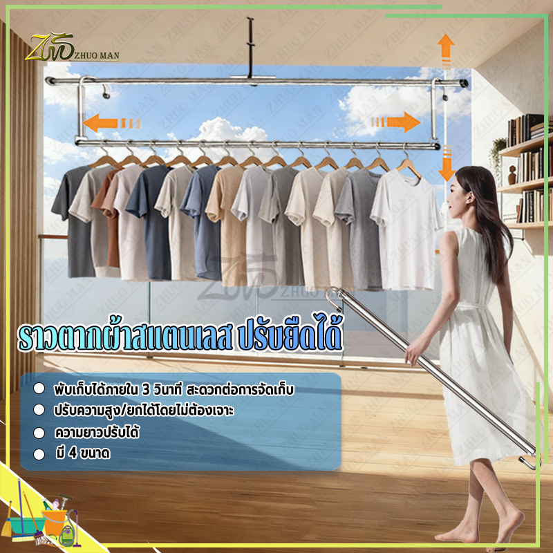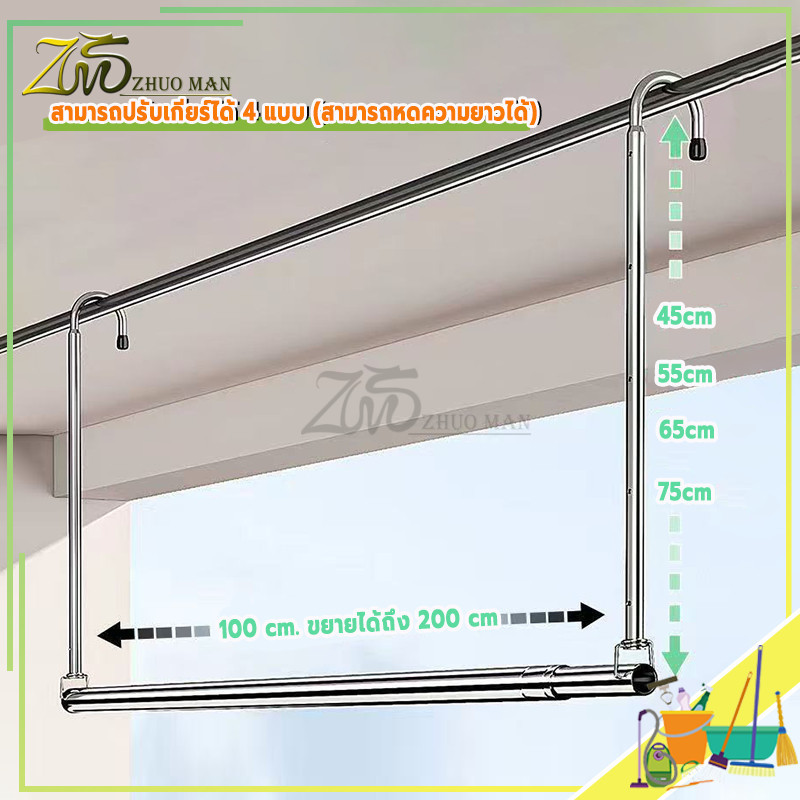 ราวแขวนผ้ายืดได้ ราวแขวนผ้าเช็ดตัว ราวตากผ้าคอนโด ราวเเขวนผ้า สแตนเลส 304 ปรับยืดความยาวได้ ไม่ต้องเจาะผนัง คุณภาพสูง