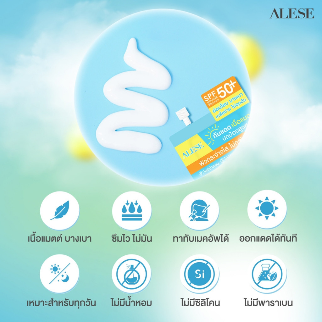 🔥แท้/ดีลสุดคุ้ม/ไลฟ์ทุกวัน🔥(กล่องx6ซอง) Alese UV whitening sunscreen SPF50+ PA++++ กันแดดแมตต์