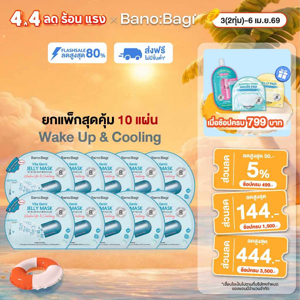 (ยกแพ็กสุดคุ้ม 10 แผ่น) BANOBAGI Vita Genic Jelly Mask - Wake Up & Cooling บาโนบากิ