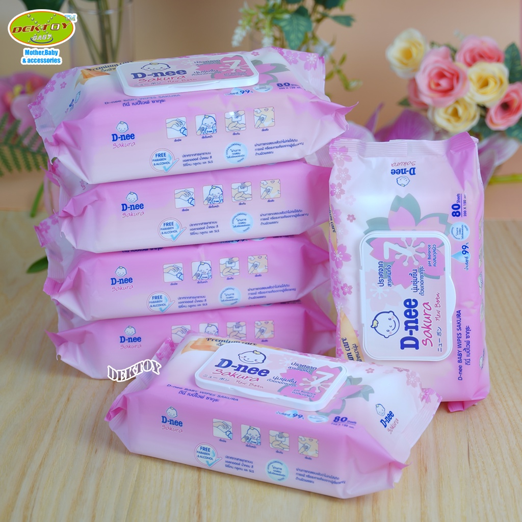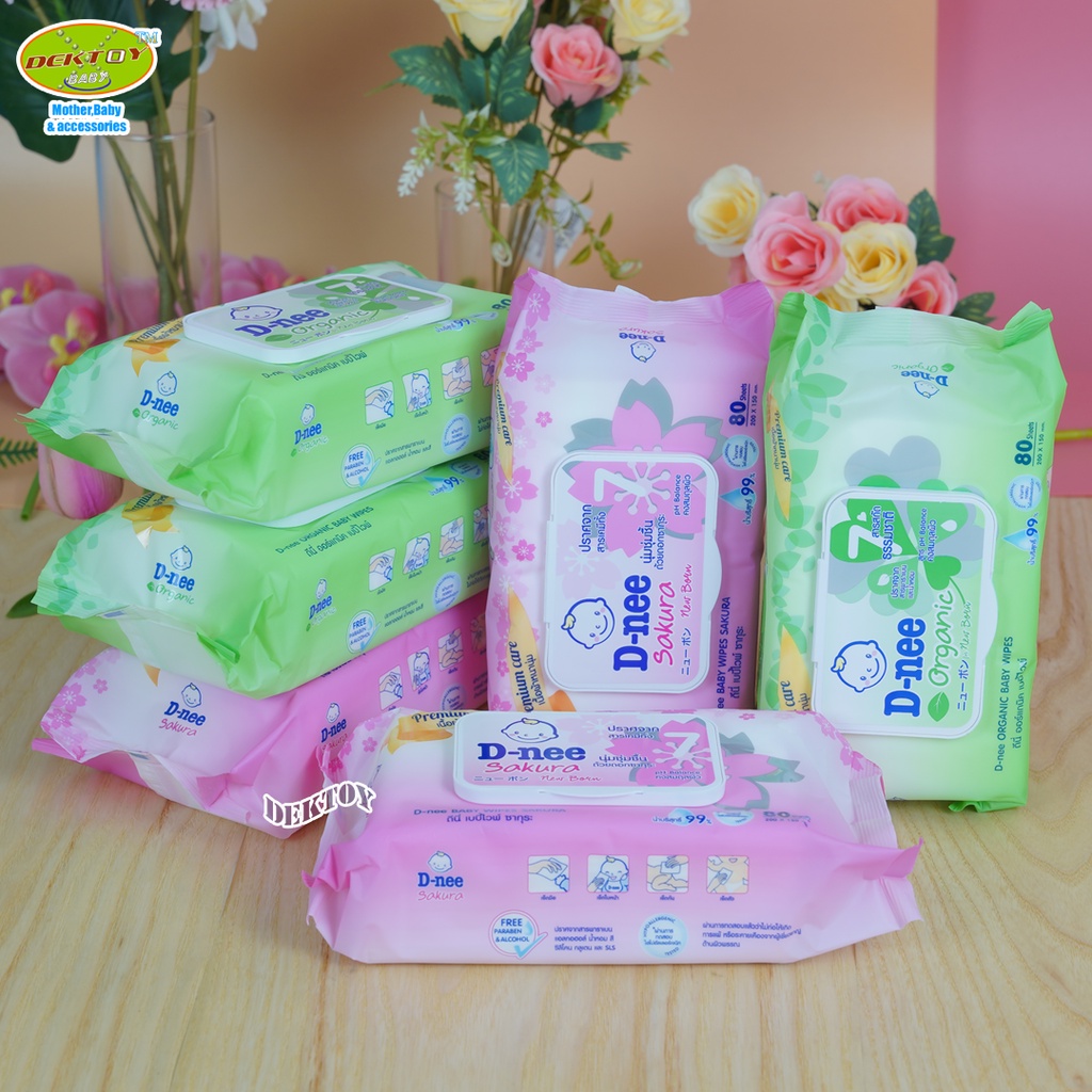 ทิชชู่เปียกดีนี่ Dnee เบบี้ไวพ์ ซากุระ และ ออแกนิค 80 ชิ้น6ห่อ