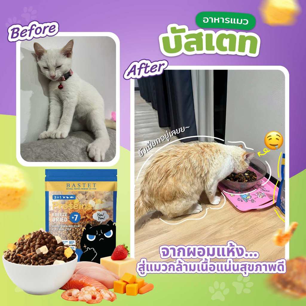 อาหารแมวบัสเตท 2 ถุง (1 kg) (แมวท้องแมวเด็กกินได้)